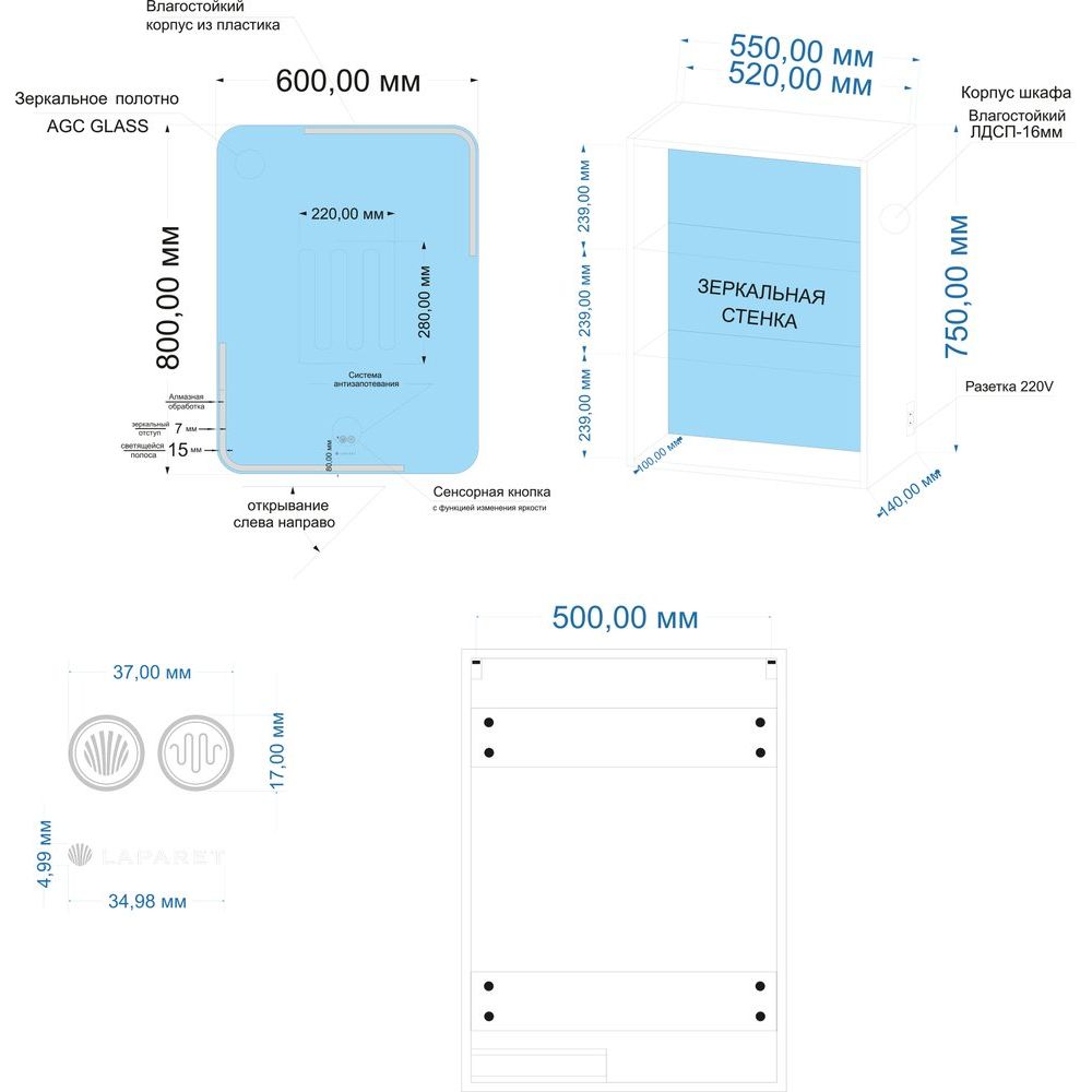 Зеркало-шкаф Laparet Accord — это стильное и функциональное решение для вашей ванной комнаты. Объединяя изысканный дизайн и передовые технологии, это изделие станет неотъемлемой частью вашего интерьера. Удобное управление подсветкой и встроенные функции делают его идеальным для ежедневного использования.