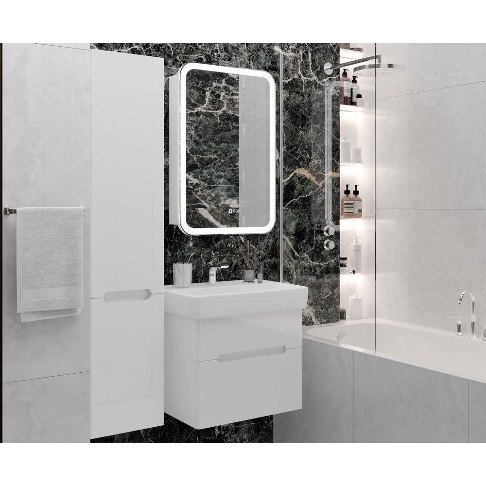 Зеркало-шкаф принадлежит коллекции Accord от бренда Laparet. Его габариты составляют 60x13,7x80 см, что позволяет гармонично вписаться в любую ванную комнату. Корпус изготавливается из ЛДСП и покрыт прочным ламинатом для долговечности и устойчивости к влаге. Светодиодная подсветка интегрирована в полотно и управляется сенсором — легким касанием вы настраиваете интенсивность освещения. Дополнительно, зеркало оснащено функцией антизапотевания и розеткой для бытовых приборов. Изделие подвесное и производится в России. На товар предоставляется гарантия сроком 2 года.
