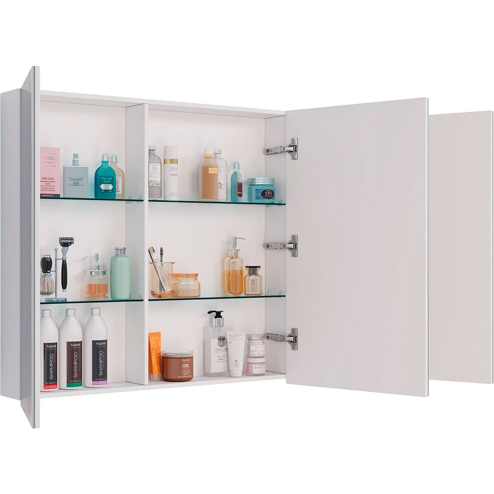 Зеркало-шкаф Lemark Universal 100 имеет ширину 100 см, глубину 14,4 см и высоту 79 см. Конструкция выполнена из ламинированного ДСП, что обеспечивает высокую устойчивость к влаге и долговечность. Покрытие корпуса может быть изящным ламинатом или стильной эмалью по вашему выбору. Отсутствие подсветки компенсируется возможностью обустроить индивидуальное освещение в ванной комнате.