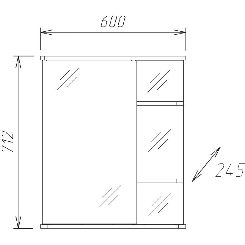 Габариты изделия составляют 60x24,5x71,2 см, что позволяет разместить его даже в небольших ванных комнатах. Корпус изготовлен из ДСП и покрыт ламинатом, что делает его устойчивым к влаге и механическим повреждениям. Подвесное крепление позволяет легко установить зеркало в нужном месте. Россия — страна производства. На изделие предоставляется гарантия сроком 2 года.