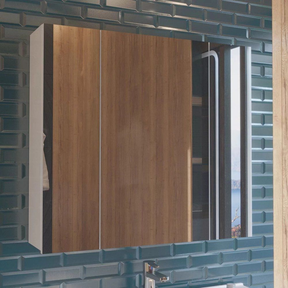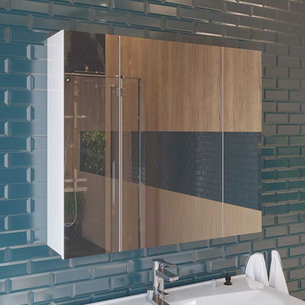 С габаритами 85,8x14,8x69 см, этот зеркало-шкаф станет компактным, но вместительным решением для хранения в ванной. Прочный корпус из ЛДСП обладает влагостойкостью, а три дверцы, две из которых открываются вправо и одна влево, обеспечены механизмом доводчика для мягкого закрывания. Изделие оснащено подвесами, что позволяет легко и надежно крепить его к стене. Глянцевая пленка не только придаёт изделию эстетический вид, но и увеличивает его износостойкость. Гарантируем качество на протяжении трех лет.