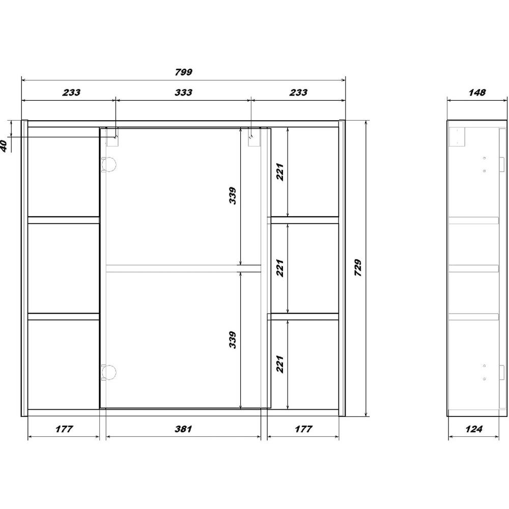 Зеркало-шкаф SanStar Тоскана 80 имеет следующие размеры: ширина — 79,9 см, глубина — 14,8 см, высота — 72,9 см. Корпус изготовлен из ламинированной древесно-стружечной плиты (ЛДСП), что обеспечивает надежность и устойчивость к влаге. Изделие не оборудовано подсветкой, но имеет прочные подвесы для удобной установки. Гарантия на продукт составляет 3 года, что подтверждает его качество и надежность.