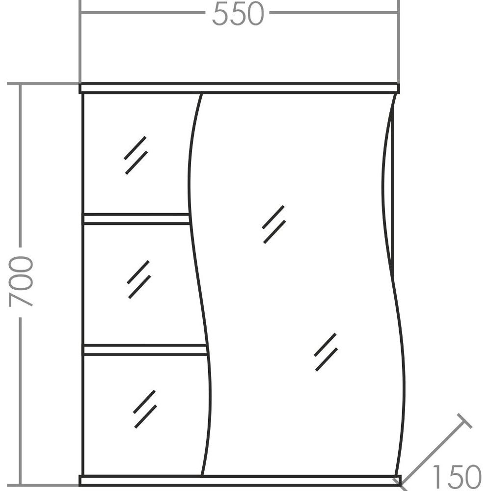 Зеркало-шкаф СанТа Волна R 55 имеет размеры 55x15x70 см, что подходит для компактного размещения в небольшой ванной комнате. Корпус выполнен из ДСП и покрыт надежной пленкой для долговечности. Подвешивается легко благодаря встроенным подвесам. Механизм доводчика обеспечивает мягкое закрытие дверцы, исключая неприятные хлопки.