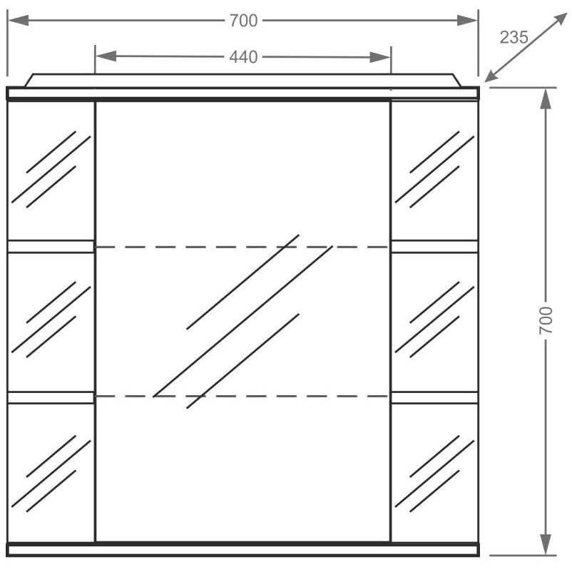Корпус шкафчика изготовлен из ЛДСП и имеет ламинатное покрытие, что делает его устойчивым к воздействию влажности. Компактные габариты 70x23,5x70 см позволяют ему идеально вписаться даже в небольшие помещения. Зеркало-шкаф оснащено механической кнопкой электровыключателя и розеткой, что обеспечивает дополнительные удобства. Дополнительные подвесы облегчают монтаж, а гарантия на один год подтверждает долговечность изделия.