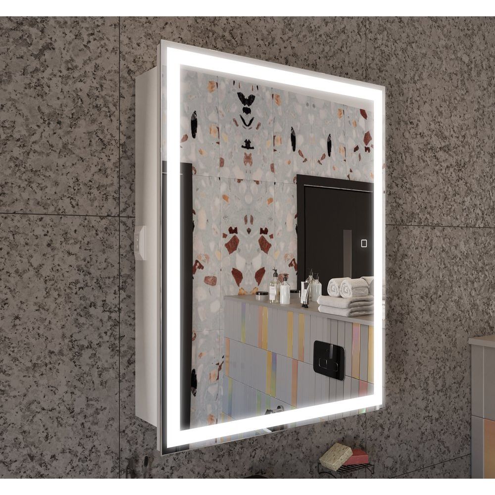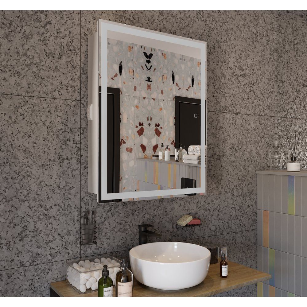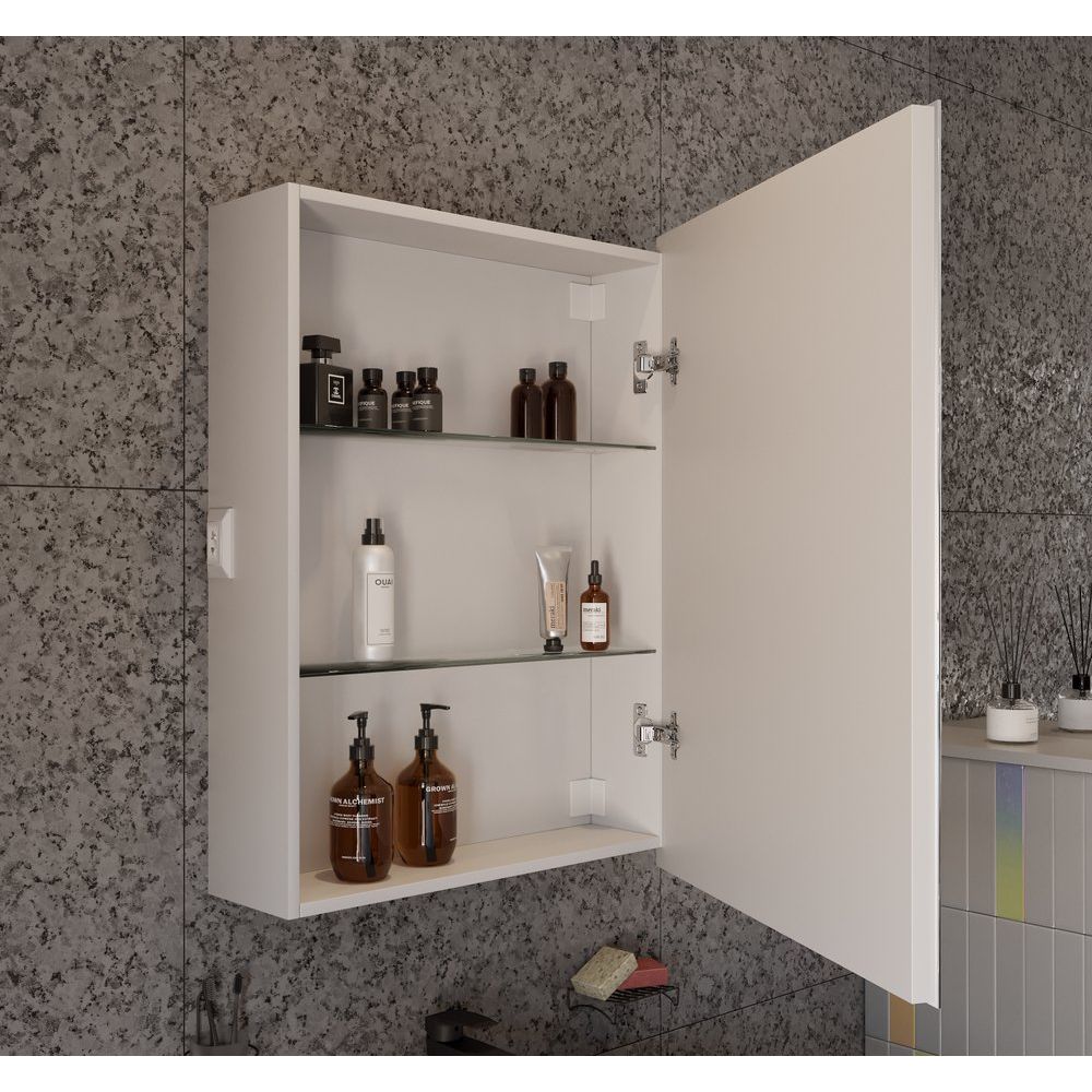 Представляем зеркало-шкаф STWORKI «Эстерсунд 60», идеальное решение для вашей ванной комнаты. Это слияние современного стиля и практичности, которое понравится даже самым взыскательным покупателям. Корпус из ЛДСП белого цвета служит надежной основой для качественного зеркального полотна. Управление LED-подсветкой осуществляется легким касанием сенсорной кнопки, что делает использование простым и удобным. Внутри шкафа вы найдете три отделения со стеклянными полками для аккуратного хранения всех ваших косметических и гигиенических средств.