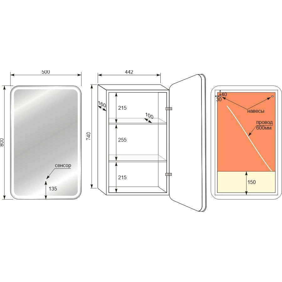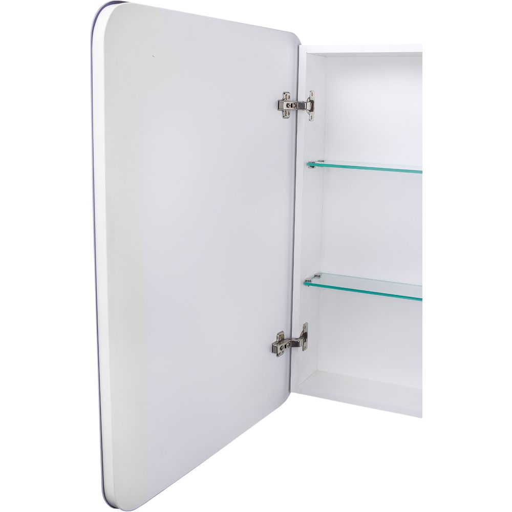 Зеркало-шкаф Каре L 50 имеет габариты 50 см в ширину, 16 см в глубину и 80 см в высоту, что позволяет компактно разместить его даже в малогабаритных помещениях. Корпус из МДФ покрыт пленкой, устойчивой к влаге и температурным перепадам. Очень удобная подсветка в полотне активируется через сенсорный выключатель, реагирующий на легкое касание.