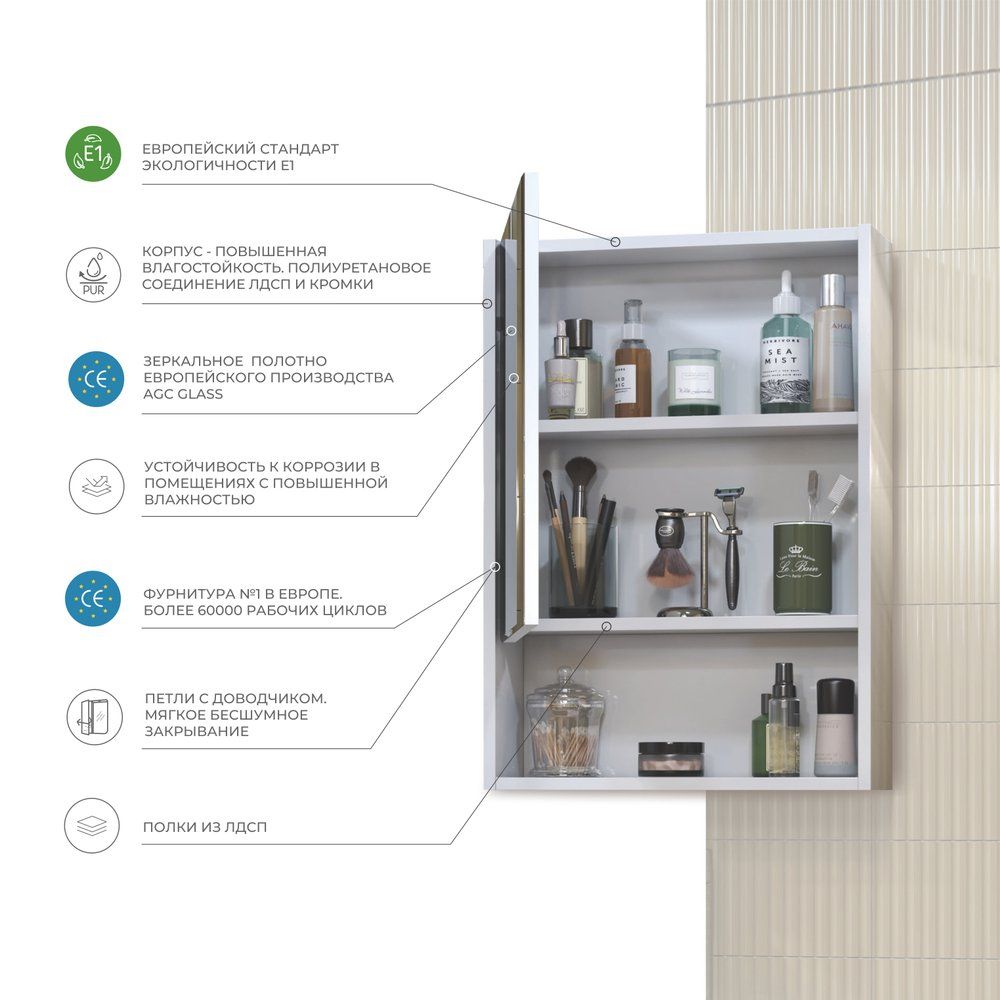 Зеркало-шкаф Vigo Urban 50 имеет размеры 50 см в ширину, 15,4 см в глубину и 70 см в высоту, что делает его компактным и вместительным одновременно. Корпус выполнен из ЛДСП и покрыт ламинатом, обеспечивающим долговечность и стильный внешний вид. Отсутствие подсветки позволяет сосредоточиться на основной функции изделия. Оснащено механизмом доводчика, обеспечивающим плавное закрывание, и удобными подвесами для легкой установки. Производитель предоставляет 2 года гарантии, подтверждая надежность своих изделий. Все элементы мебели поступают уже в собранном виде, что облегчает установку и экономит ваше время. Модель произведена в России, что гарантирует соблюдение всех стандартов качества.