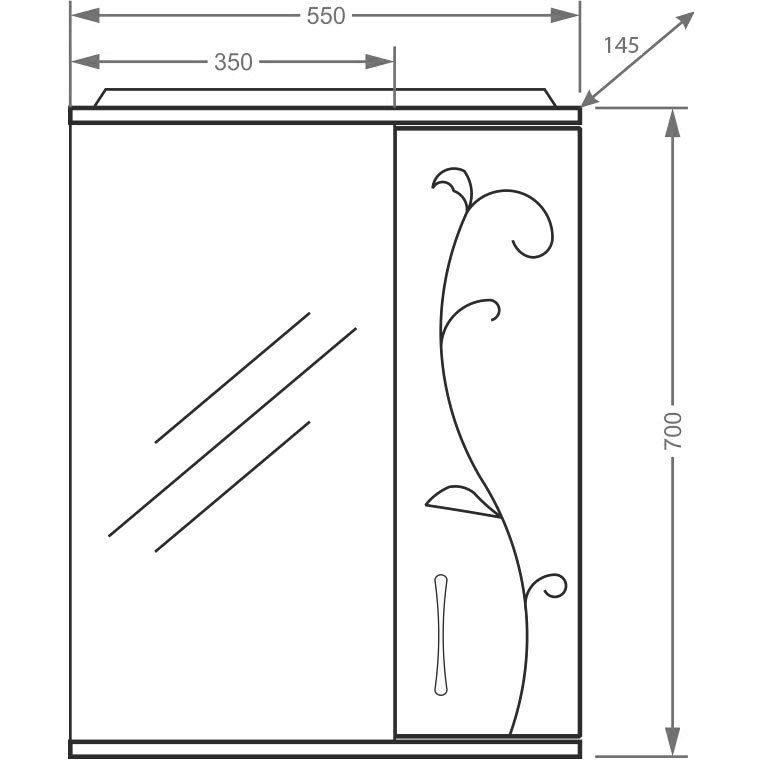 Зеркало размером 55x14,5x70 см обладает прочным корпусом из ЛДСП с ламинатным покрытием, что защищает от влаги. Хромированная фурнитура подчеркивает стильность модели. Встроенная подсветка и розетка позволяют использовать зеркало с максимальным удобством. Механическая кнопка выключателя гарантирует простоту в эксплуатации. Подвесная конструкция облегчает установку.