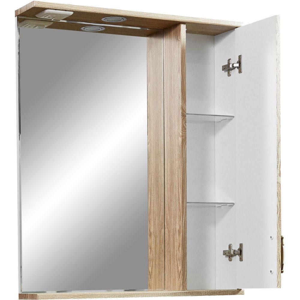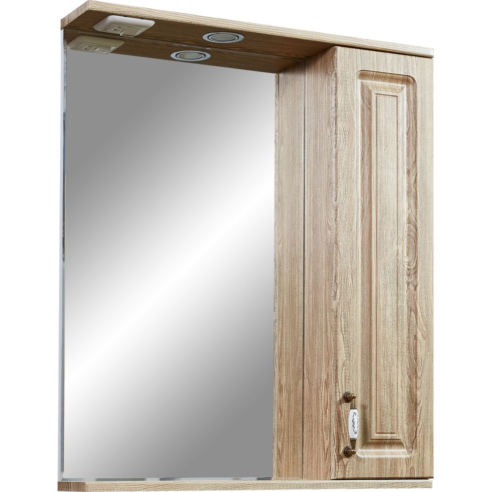 Зеркало имеет размеры 65x14,5x80 см, что делает его оптимальным для большинства ванных комнат. Корпус выполнен из МДФ с пленочным покрытием, что обеспечивает долговечность и устойчивость к влаге. Фурнитура из бронзы придает изделию изысканный вид, а встроенная розетка добавляет функциональности. Механизм доводчика обеспечивает плавное закрывание, продлевая срок службы конструкции. Подвесное крепление упрощает монтаж.