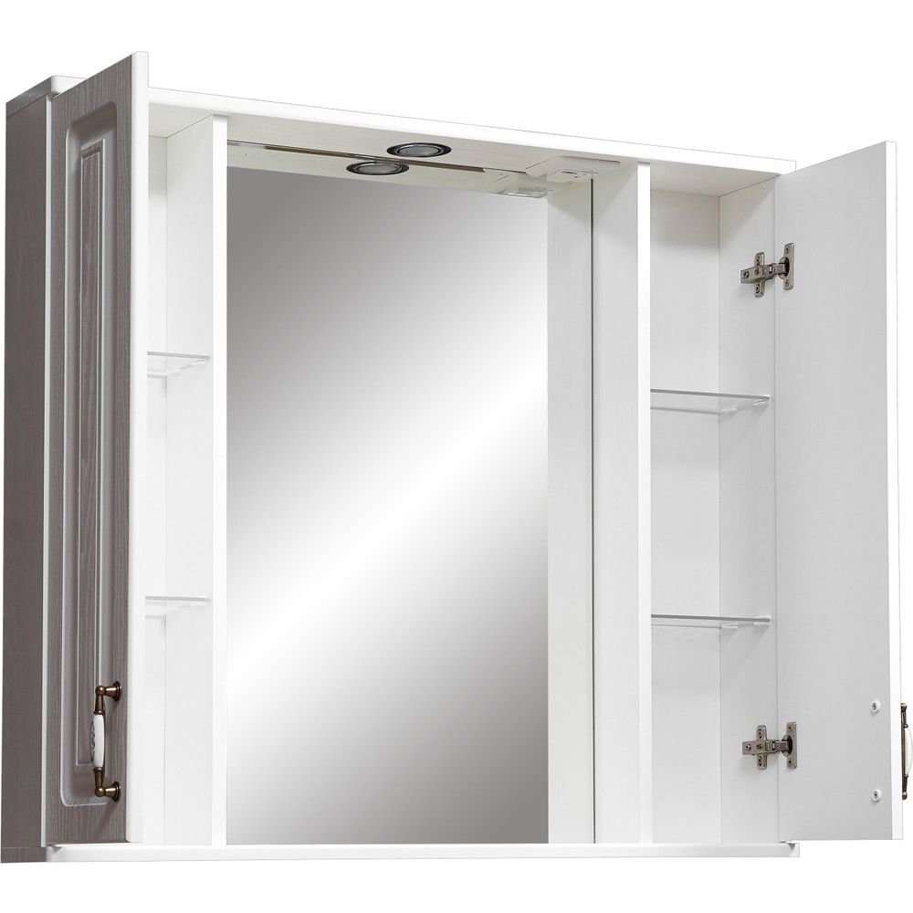 Зеркало имеет габариты 90x15x80 см и выполнено из высокого качества ЛДСП, что гарантирует долговечность изделия. Корпус покрыт ламинированным слоем, который защищает от влаги и царапин. Удобство использования добавляет встроенная розетка и механический выключатель. Особая бронзовая фурнитура придает изделию классический шарм, в то время как механизм доводчика обеспечивает плавное закрывание. Прочные подвесы делают зеркало надежно крепящимся к стене. Гарантия на изделие составляет 1 год. Изготовлено в России и предназначено для подвесного монтажа.