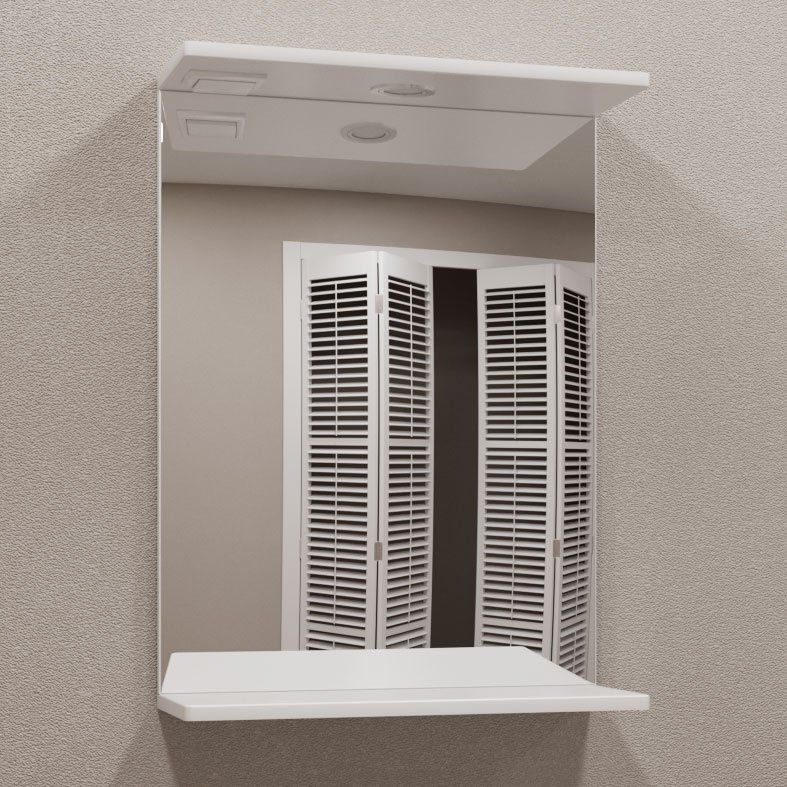- Практичное наличие розетки прямо на зеркале