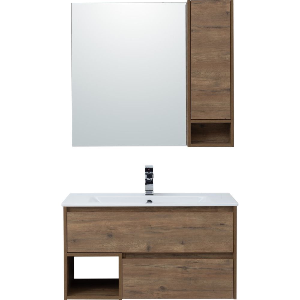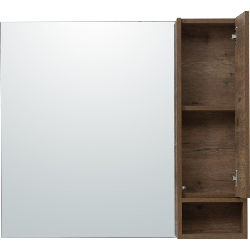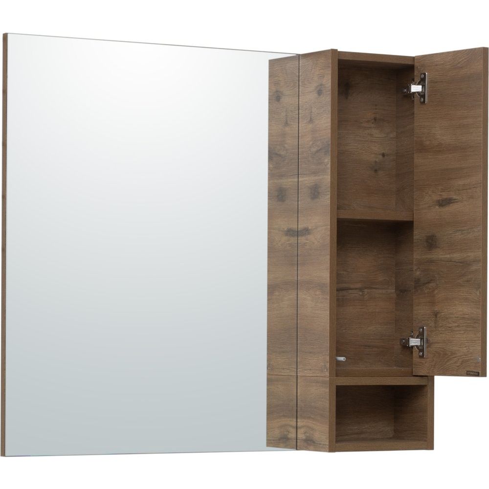 Большое зеркало-шкаф STWORKI «Карлстад 90 R» впечатляет своим стильным дизайном и функциональностью. Сочетание декора «дуб рустикальный» и современного исполнения образует атмосферу уюта и комфорта в любом интерьере ванной комнаты. Модель предлагает два вместительных секционных шкафа и удобную открытую полочку. Технология Push-to-Open гарантирует легкость и удобство использования — достаточно легкого нажатия, чтобы открыть дверцу.