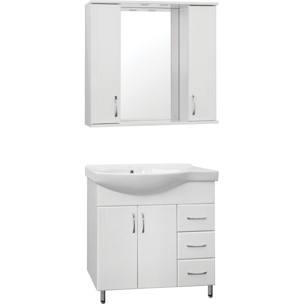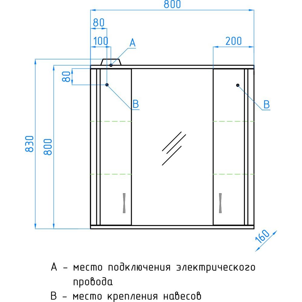 Зеркало Style Line Эко Стандарт Панда С 80 обладает компактными габаритами: 80 см в ширину, 16 см в глубину и 83 см в высоту, что делает его идеальным для стандартных ванных комнат. Корпус произведен из качественного ДСП с ламинатным покрытием для дополнительной защиты от влаги. Зеркало снабжено механическим электровыключателем и механизмом доводчика для плавного закрывания дверок шкафчиков. Для вашего удобства предусмотрена встроенная розетка и дополнительные подвесы для надежной фиксации.