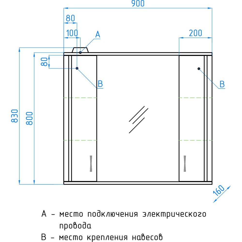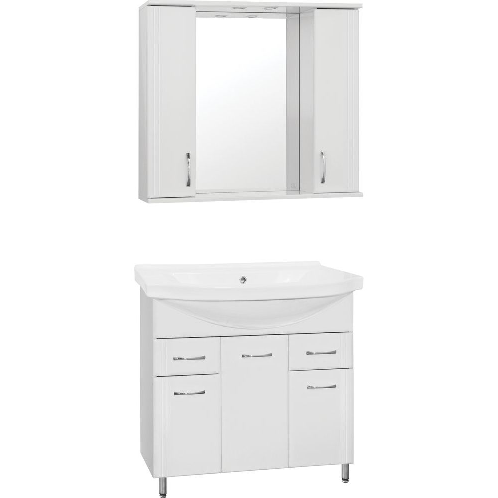 Зеркало-шкаф выполнено из высококачественного ДСП с ламинатным покрытием. Его габариты составляют 90x16x83 см, что позволяет разместить его в различных по размеру ванных комнатах. Мебель оснащена подвесами и имеет встроенный электровыключатель с механической кнопкой. Внутренние полочки из стекла имеют трапециевидную еврокромку, а плавное закрывание дверок обеспечивается механизмами доводчика. Гарантией на изделие предоставляется срок 1 год.