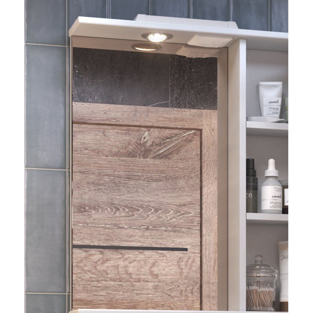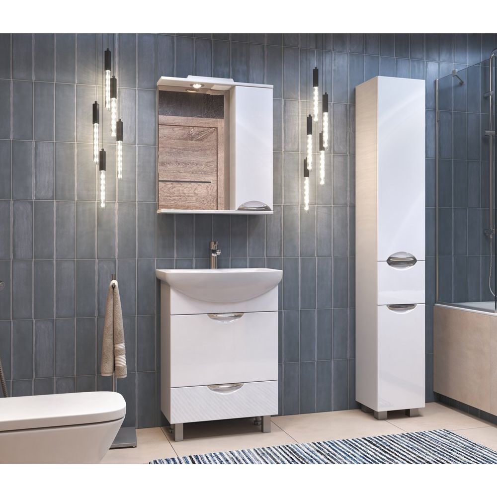 Зеркало Vigo Callao R 60 с подсветкой имеет габариты 60,5x15,6x70 см, что делает его подходящим для ванных комнат любой площади. Корпус изготовлен из ламинированного ЛДСП, а его хромированная фурнитура обеспечивает стильный внешний вид. Зеркало оснащено механизмом доводчика для плавного закрывания и включает встроенную розетку для дополнительного удобства. Подвесное крепление позволяет легко установить зеркало в нужном месте.