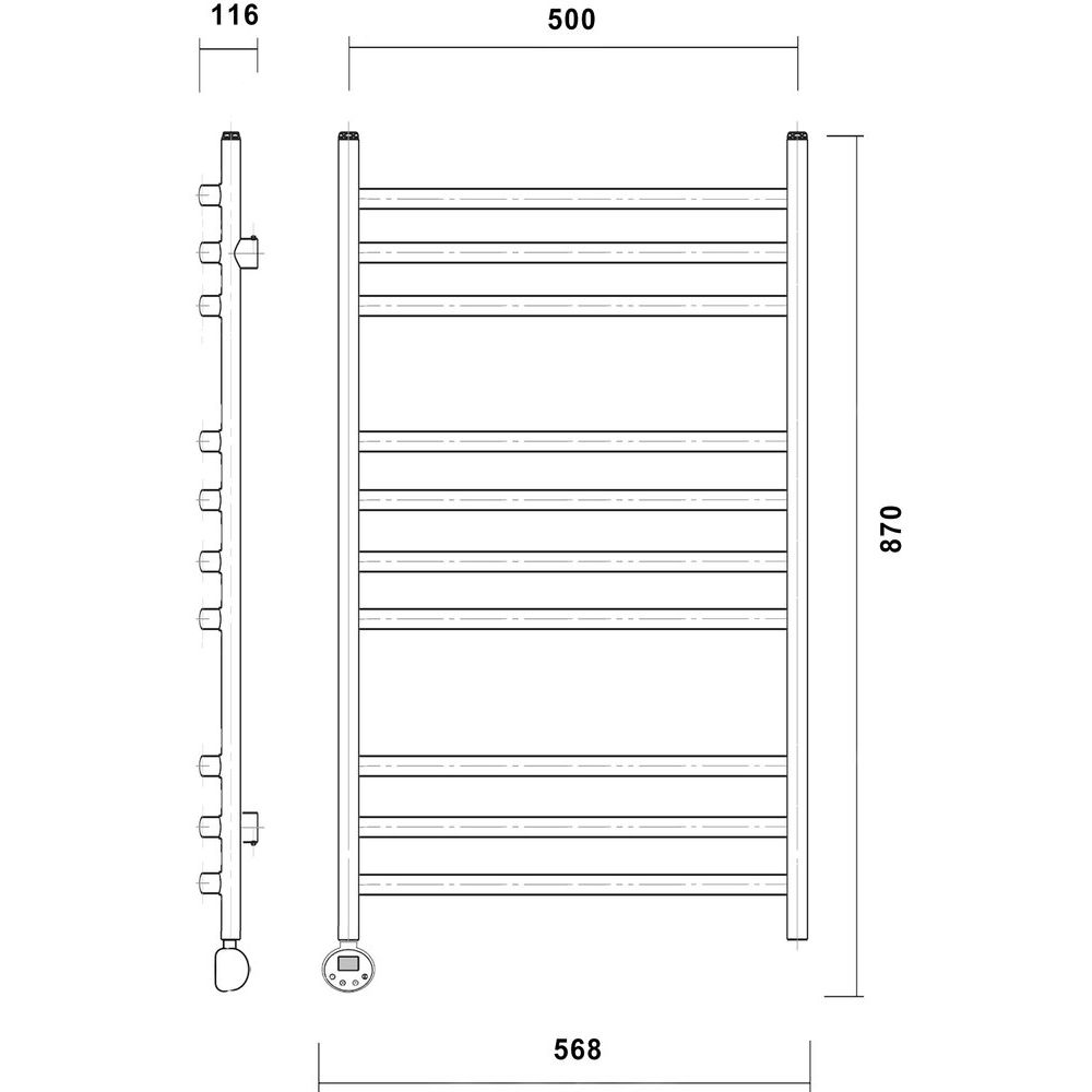 Полотенцесушитель размером 50x80 см подключается к электрической сети через кабель с вилкой. Его мощность составляет 300 Вт, что позволяет быстро нагреть помещение без лишних затрат. Устройство оснащено световым индикатором для удобства контроля работы. В качестве теплоносителя используется антифриз, что увеличивает надежность работы. Электросварной шов и антикоррозийные свойства гарантируют долгий срок службы.