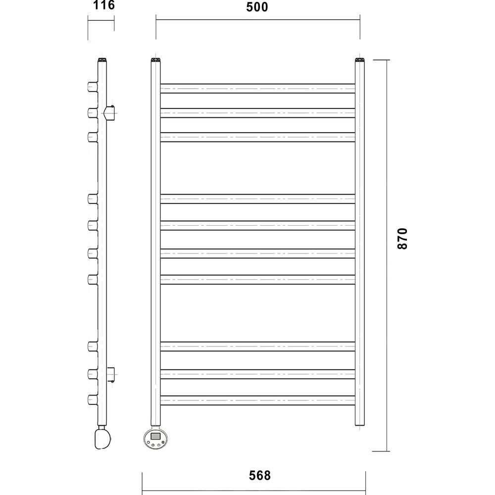 Окунитесь в мир комфорта и стиля с электрическим полотенцесушителем Domoterm Калипсо П10. Современный дизайн и черный матовый цвет делают его идеальным дополнением для любой ванной комнаты. Благодаря инновационной технологии, этот прибор не только согреет ваши полотенца, но и станет отличным дизайнерским акцентом.