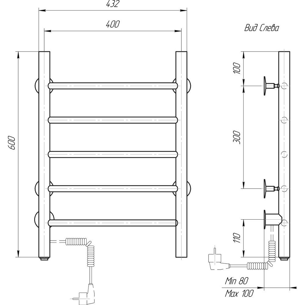 Полотенцесушитель обладает компактными габаритами (43,2x60 см) и подходит для любой ванной комнаты. Он потребляет всего 46 Вт, что обеспечивает экономное энергопотребление. Изделие подключается к электрической сети через кабель с вилкой и имеет удобный выключатель на корпусе. Благодаря функции отключения при нагреве, этот полотенцесушитель бережёт ваш бюджет и экологию. Изготовлен из нержавеющей стали с использованием трубы с электросварным швом, что гарантирует долгий срок службы. Сухой тип с нагревательным кабелем обеспечивает безопасное и эффективное использование. Модель подвесная, с нижним левым подключением, и включает все необходимые крепления и электрический кабель в комплекте. Гарантия на изделие составляет 2 года.