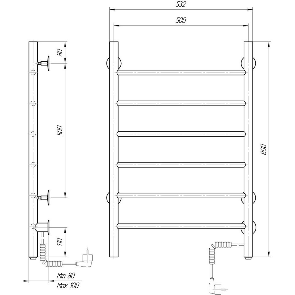 Полотенцесушитель имеет размеры 53,2 см в ширину и 80 см в высоту, что позволяет ему легко вписаться в интерьер вашей ванной комнаты. Подключение возможно через кабель с вилкой или скрытое подключение в стену. Мощность устройства составляет 72 Вт, при этом он эффективно обогревает площадь в 0.72 м². Предусмотрено автоматическое отключение при нагреве для экономии электроэнергии. Устройство выполнено из нержавеющей стали с электросварным швом, что гарантирует прочность и долговечность. Подключение справа обеспечивает удобство при установке. В комплект входят нагревательный кабель, крепления и электрический кабель.