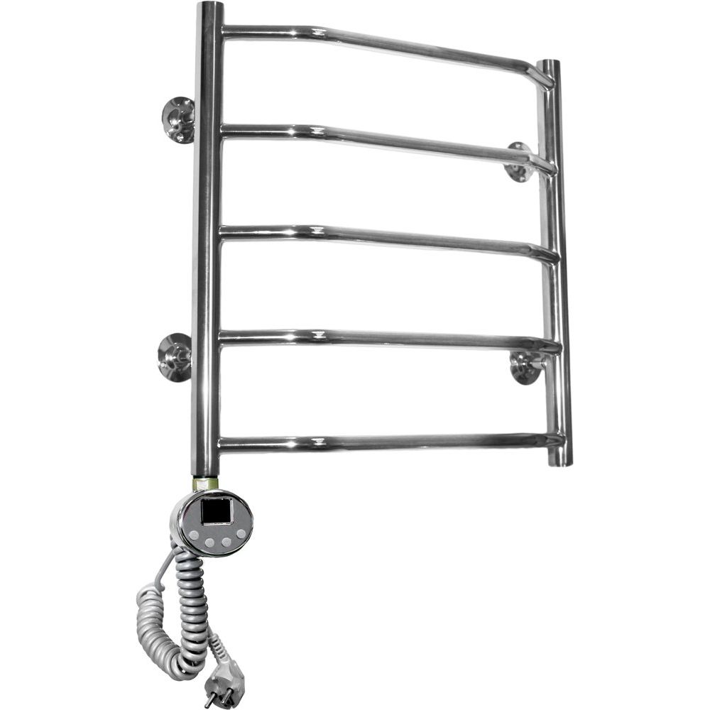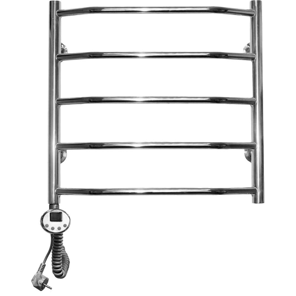 Полотенцесушитель имеет габариты 50x50 см и мощность 300 Вт, что обеспечивает быстрый нагрев. Он подключается к электрической сети через кабель с вилкой и оснащен выключателем на корпусе для легкого отключения. Нагревательный ТЭН расположен в нижней части в месте подключения, что обеспечивает равномерное распределение тепла. В дополнение к этому, световой индикатор на корпусе помогает контролировать работу устройства. Используемый антифриз как теплоноситель позволяет значительно сократить энергопотребление.