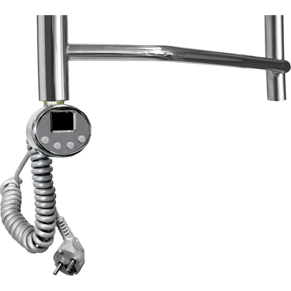 Габариты полотенцесушителя составляют 50x70 см, что делает его идеальным выбором для различных размеров ванных комнат. Устройство, потребляющее всего 300 Вт, подключается к сети через кабель с вилкой, обеспечивая удобство установки и использования. Левая сторона подключения и встроенный терморегулятор позволяют выбрать оптимальную температуру, что вкупе с функцией отключения при нагреве делает эксплуатацию безопасной и экономичной. Использование антифриза в качестве теплоносителя и надежная труба с электросварным швом подчеркивают высокое качество и практичность изделия. Комплект включает крепления и электрический кабель.