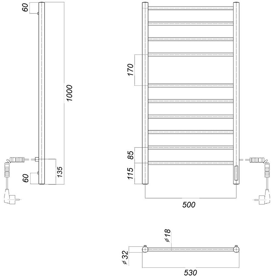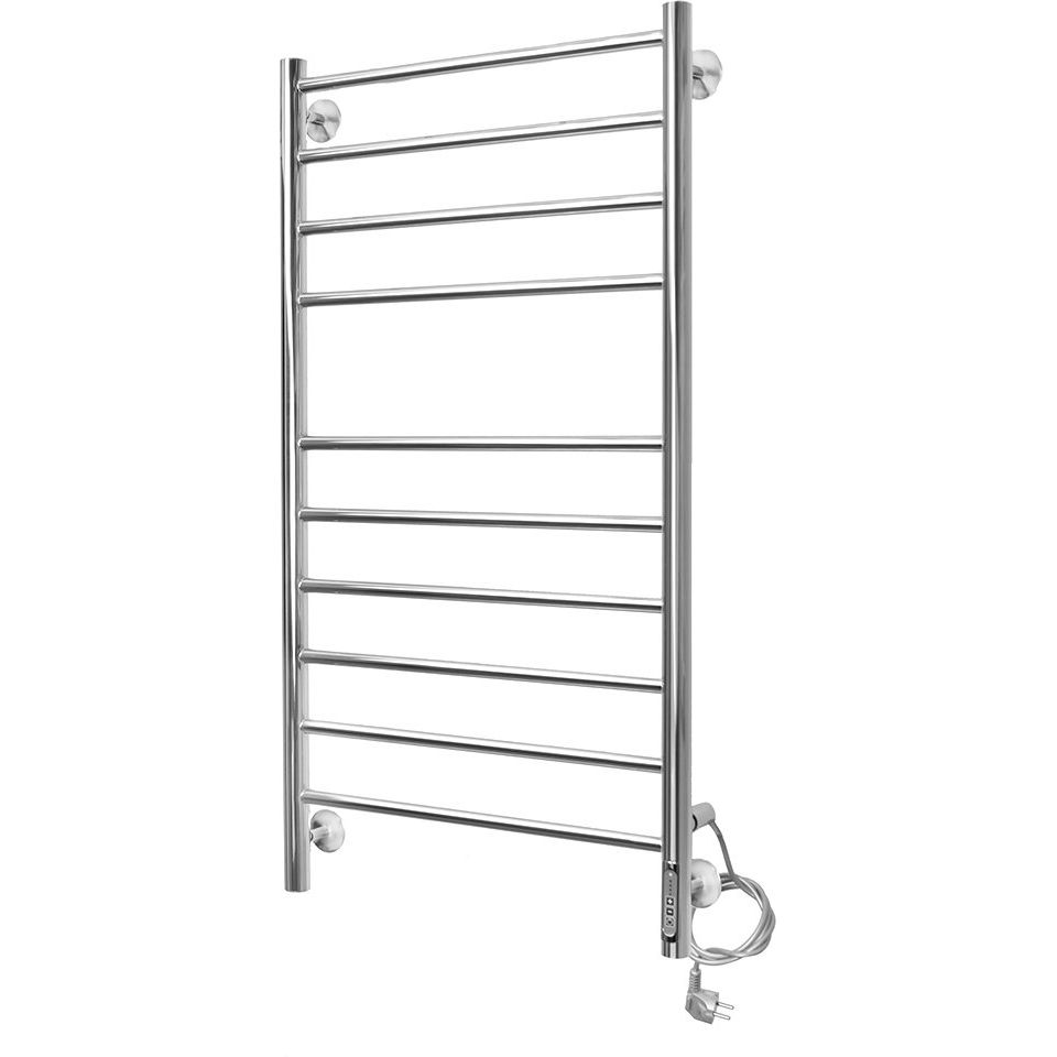 Электрический полотенцесушитель Domoterm Медея П10 50x100 EK R имеет габариты 53x100 см и подключение справа. Он легко подключается как к скрытой электросети, так и через кабель с вилкой, предоставляя выбор подходящего варианта. Мощность устройства составляет 113 Вт, что достаточно для обогрева площади в 1.13 м². Изготовлен из нержавеющей стали с использованием электросварного шва, он является подвесным и оснащен нагревательным кабелем, спрятанным внутри для максимальной эффективности.