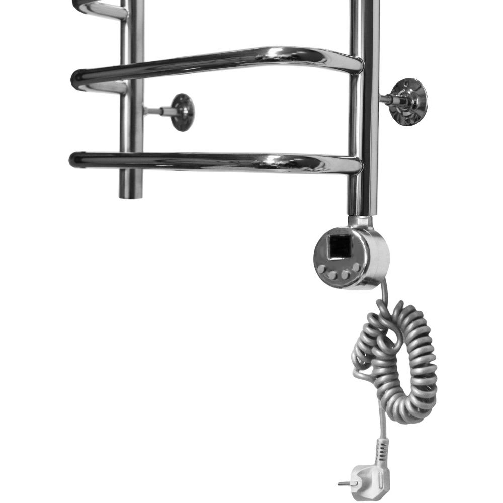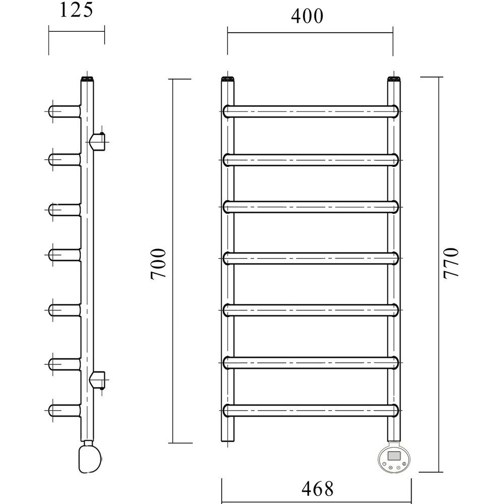 Полотенцесушитель имеет размеры 46,8x77 см и мощность 300 Вт, что позволяет обогревать пространство до 3 кв. м. Подключение производится через электрический кабель с вилкой, оснащенный выключателем и световым индикатором на корпусе для удобства контроля. Элемент нагрева (ТЭН) расположен внизу, поддерживая равномерное распределение тепла. Встроенный терморегулятор обеспечивает выбор комфортной температуры и экономию энергии, а функция автоматического отключения предотвращает перегрев. Подключение осуществляется справа, и в качестве теплоносителя используется антифриз. Полотенцесушитель подвесной, комплектуется креплениями и кабелем для легкой установки. Изделия маркируются производителем на два года гарантии, что подтверждает их надежность и качество.