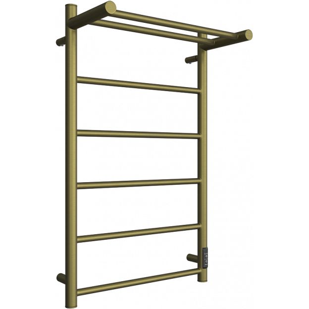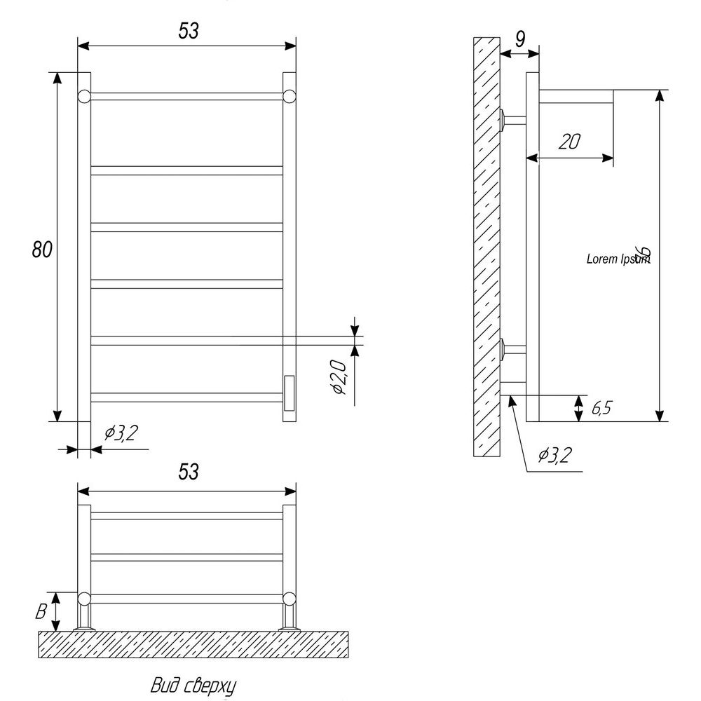 Размеры полотенцесушителя составляют 53x80 см, что делает его оптимальным выбором как для больших, так и для компактных помещений. Он подключается к электрической сети как через кабель с вилкой, так и с возможностью скрытой установки в стене. Устройство может быть подключено как с правой, так и с левой стороны, что гарантирует гибкость при установке. Полка предоставляет дополнительное место для хранения. Используемый нагревательный кабель и световой индикатор на корпусе добавляют удобство в эксплуатации.