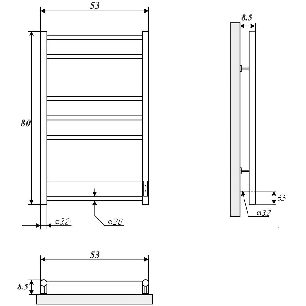 Полотенцесушитель имеет размеры 53x80 см, что идеально подходит для стандартной ванной комнаты. Подключение можно осуществить как справа, так и слева, что делает монтаж более гибким. Устройство оснащено выключателем на корпусе для легкого отключения электропитания. Встроенный терморегулятор позволяет установить оптимальную температуру, а таймер добавляет удобства. Изделие имеет нагревательный кабель сухого типа, спрятанный внутри, что повышает безопасность и долговечность.