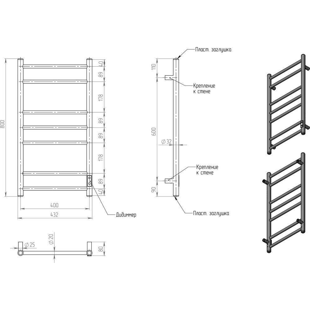 Полотенцесушитель Двин L neo имеет размеры 43,2x80 см и подключается к электрической сети через кабель с вилкой или скрыто в стене. Устройство оснащено выключателем для удобного отключения питания и световым индикатором на корпусе, который показывает статус работы. Встроенный терморегулятор позволяет регулировать температуру, а таймер отключения — существенно экономить электроэнергию. Полотенцесушитель использует нагревательный кабель для равномерного прогрева, а установка возможна как с подключением справа, так и слева. Крепления и электрический кабель входят в комплект.