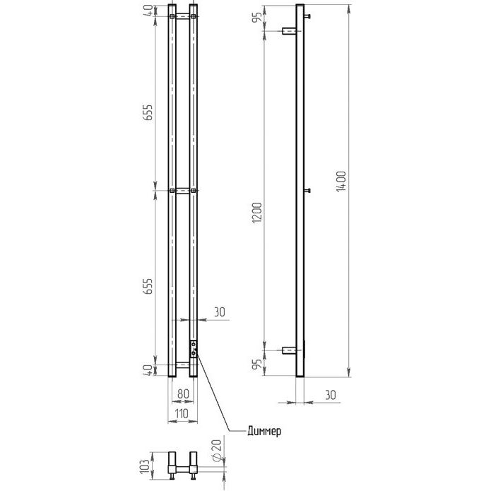 Полотенцесушитель Двин X-2 plaza neo имеет габариты 11x139 см, его можно подключить к электрической сети через кабель с вилкой или скрыто в стене, в зависимости от вашего удобства. Встроенный терморегулятор позволяет выбрать наиболее комфортную температуру, а световой индикатор на корпусе информирует о состоянии прибора. Кроме того, устройство оснащено таймером и имеет выключатель на корпусе для удобства управления. Конструкция выполнена из нержавеющей стали, что обеспечивает долгий срок службы и устойчивость к коррозии.