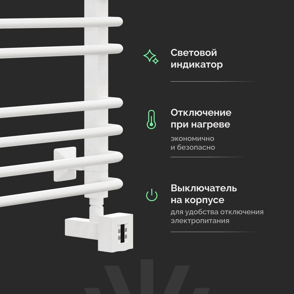 Полотенцесушитель EWRIKA Кассандра Pd 80x50 R имеет размеры 53x85 см и мощность 300 Вт, что позволяет эффективно обогревать площадь до 5.8 м². Его конструкция предусматривает подключение к электрической сети как через кабель с вилкой, так и скрыто в стене, что дает больше гибкости при установке. Встроенный терморегулятор и датчик температуры воздуха обеспечивают точное поддержание комфортной температуры, а световой индикатор на корпусе сигнализирует о рабочем состоянии устройства. Изготовленный из нержавеющей стали и оснащенный надежными креплениями, краном Маевского для удаления воздуха и накидной гайкой, этот полотенцесушитель обеспечит вам комфорт и уют в ванной комнате.