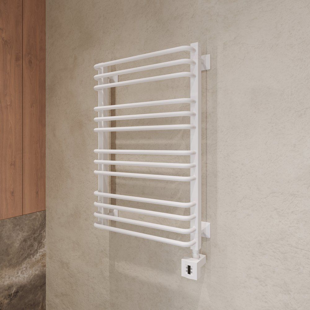 Полотенцесушитель электрический EWRIKA Кассандра Pd 80x50 R в белом исполнении — это идеальное сочетание изысканного дизайна и практичных технологий. Его уникальная конструкция в виде "лесенки" с тринадцатью секциями обеспечивает равномерный обогрев и удобную сушку даже для объемного текстиля. Благодаря аккуратным электросварным швам, внешний вид этого изделия будет прекрасно дополнять интерьер вашей ванной комнаты, а интуитивно понятная панель управления, расположенная в правой нижней части, позволяет легко регулировать температуру и включать/выключать устройство.