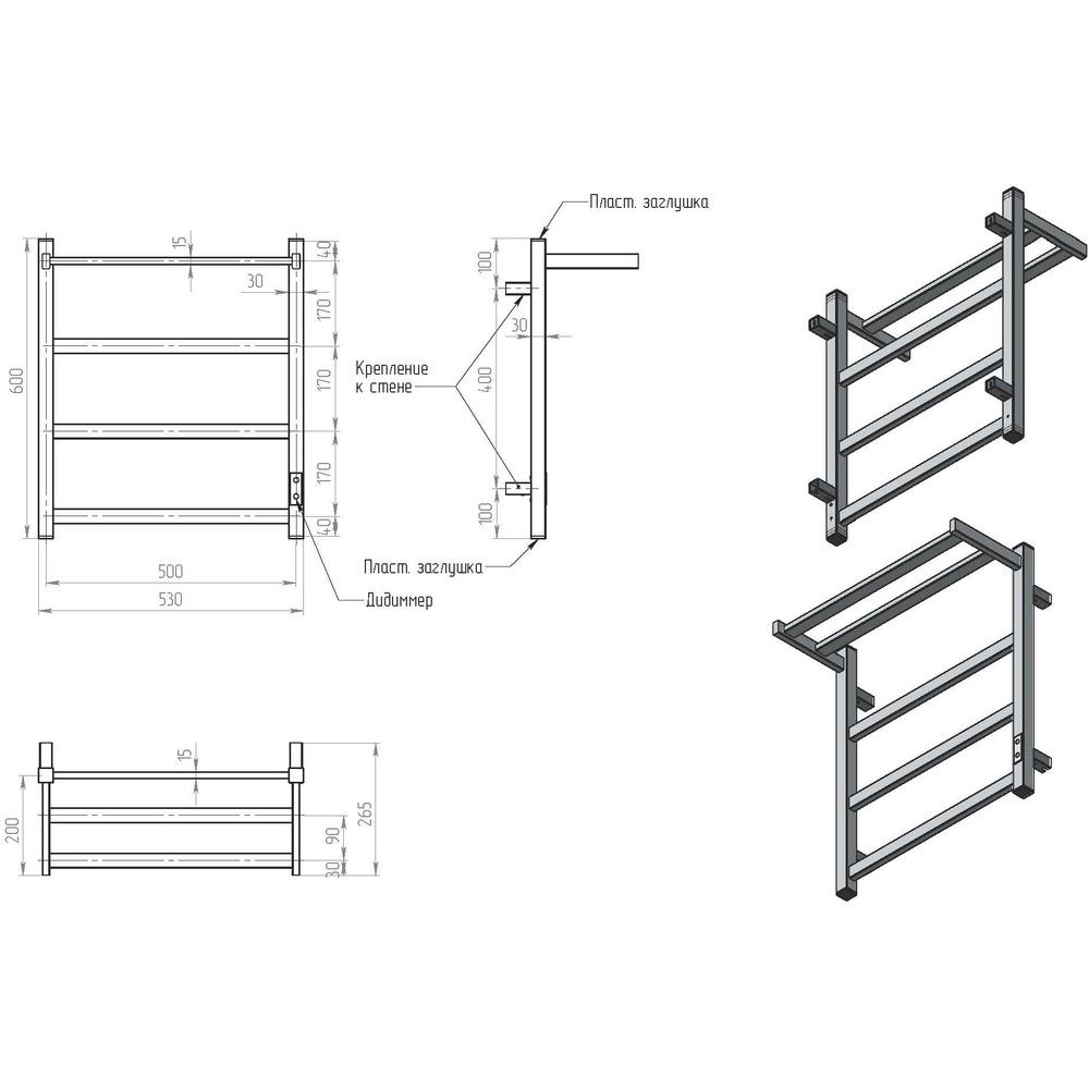 Электрический полотенцесушитель EWRIKA Пенелопа КВ7 имеет размеры 53x60 см, что делает его идеальным для компактных ванных комнат. Работает от сети с мощностью 90 Вт, подключается как через кабель с вилкой, так и скрытым способом в стене. Модель оснащена выключателем и световым индикатором на корпусе, что упрощает контроль работы. Нагревательный кабель и труба с электросварным швом обеспечивают надежность и долговечность эксплуатации. Дополнительно предусмотрена полка и крючки для удобства использования.
