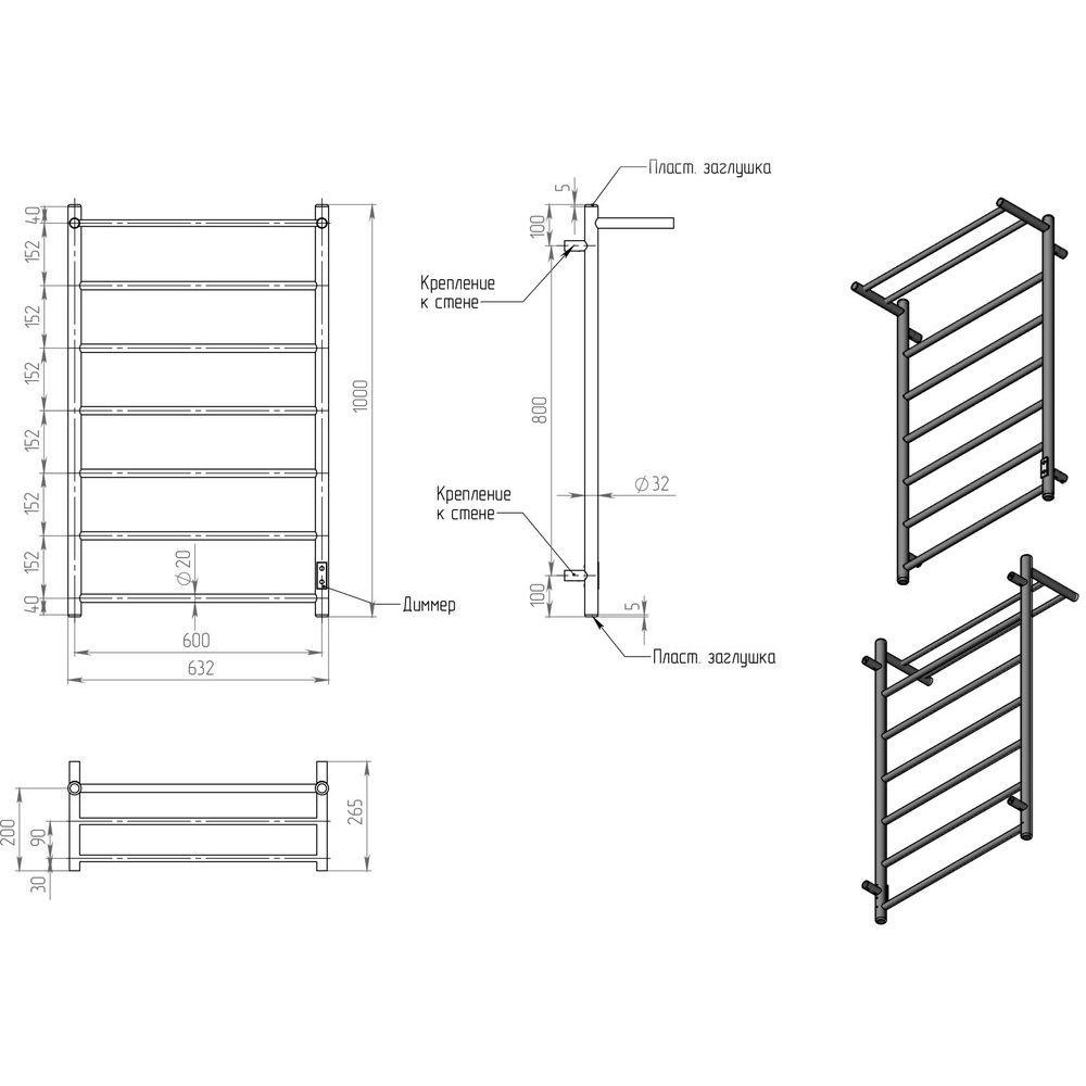 EWRIKA Сафо PN 100х60 изготовлен из высококачественной стали с использованием трубы с электросварным швом, что гарантирует долговечность и надежность. Полотенцесушитель подвесной, с удобным световым индикатором на корпусе. Нагревательный элемент — кабель, расположенный внутри устройства, обеспечивает равномерный прогрев. Подключение возможно как скрытое в стене, так и через кабель с вилкой. Габариты устройства составляют 63,2x100 см, что делает его подходящим для большинства ванных комнат. Произведено в России и сопровождается гарантией на 2 года.