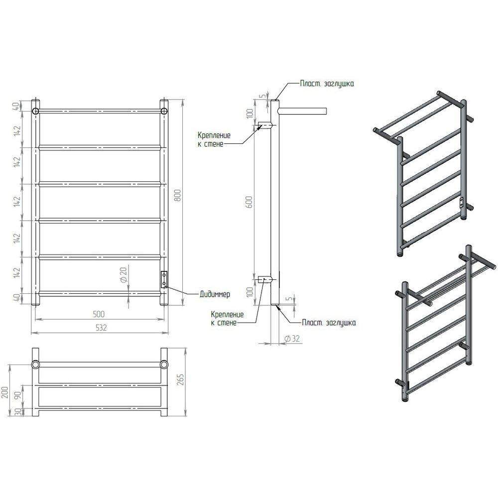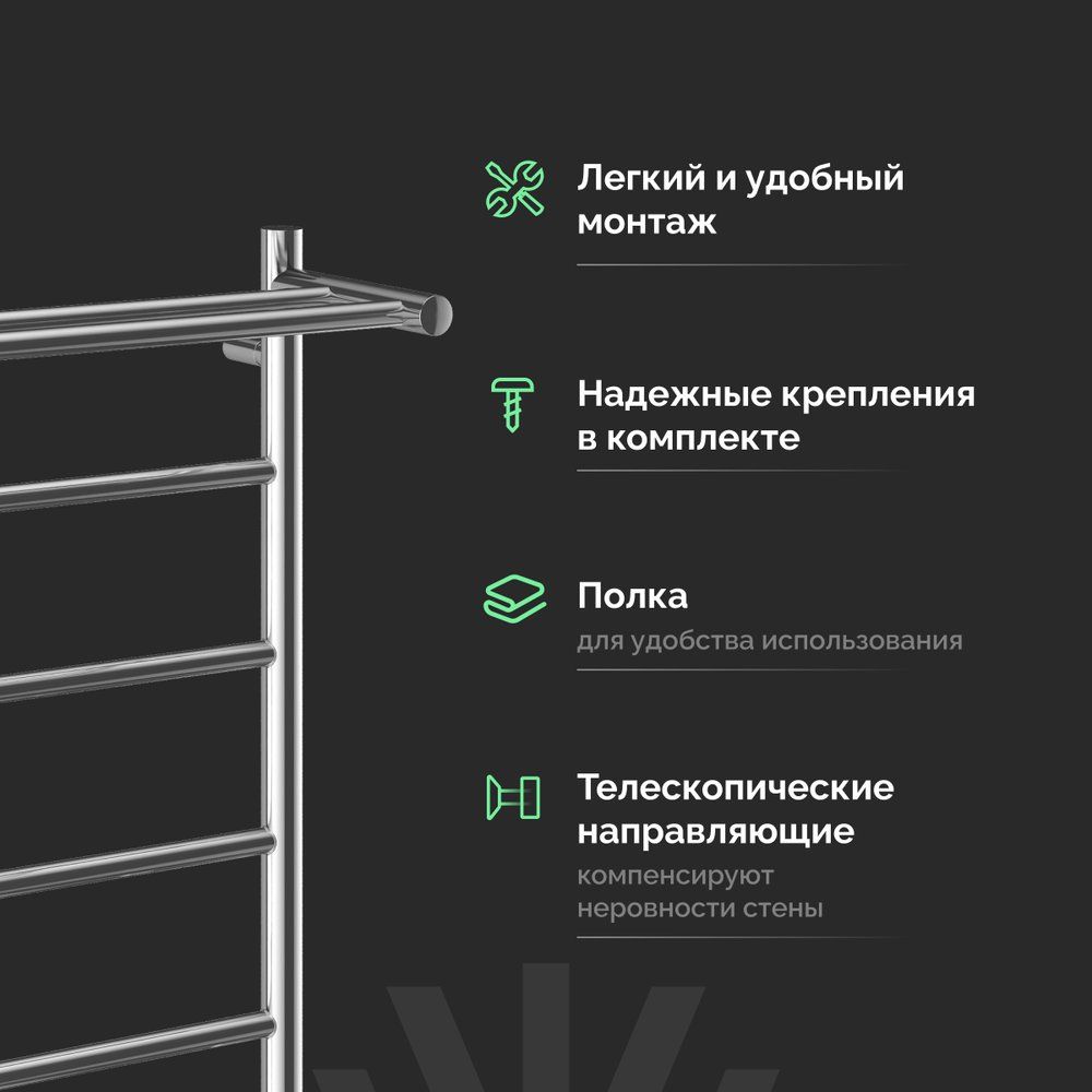 Полотенцесушитель EWRIKA Сафо PN обладает габаритами 53 x 80 см и оснащён нагревательным кабелем сухого типа, что позволяет добиться равномерного обогрева площади до 2.7 м². Удобное включение и выключение осуществляется с помощью выключателя на корпусе, а встроенный световой индикатор показывает текущий статус устройства. Изделие изготовлено из нержавеющей стали с трубой, имеющей электросварной шов, что гарантирует долговечность и надёжность в эксплуатации.
