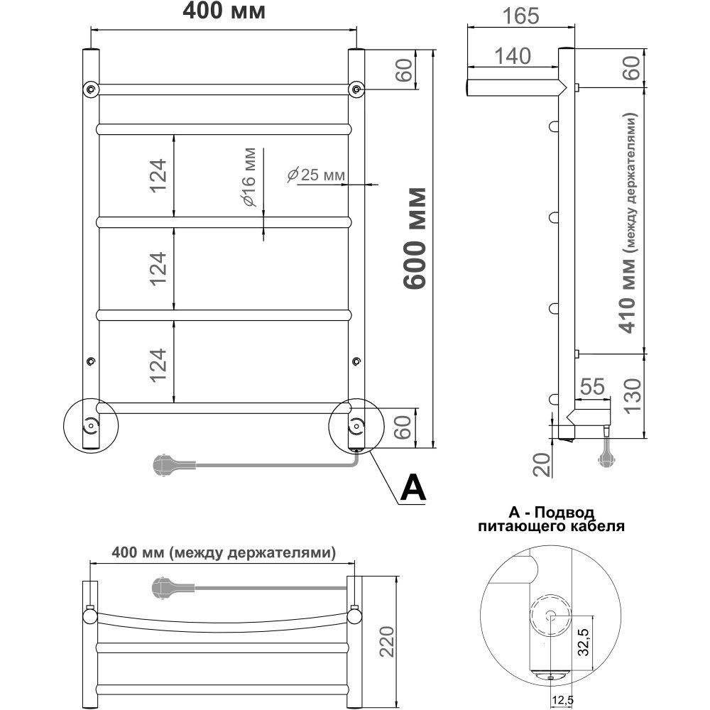 - Долговечность: изготовленный из нержавеющей стали с электросварным швом, полотенцесушитель обеспечит долгую службу без потери качества.