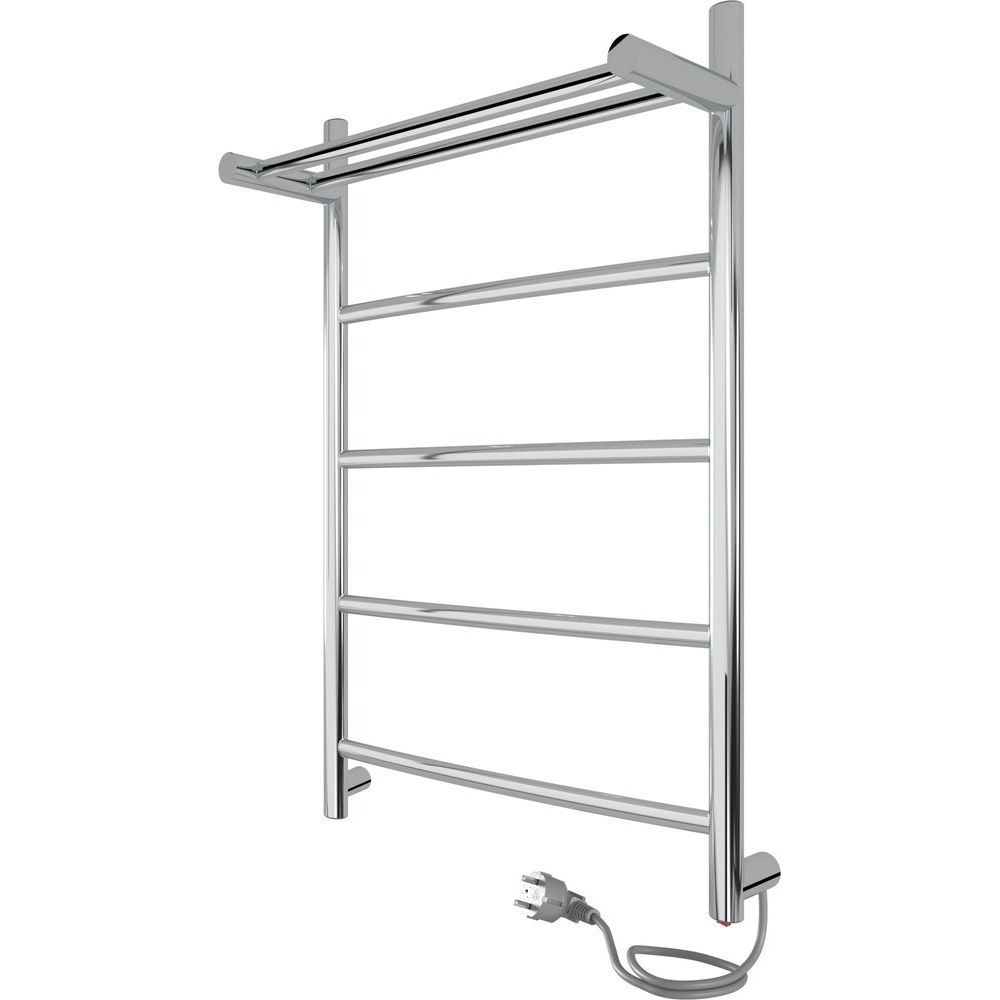 Полотенцесушитель Indigo Arc LCAE60-40PR обладает размерами 42,5x60 см и может подключаться к электрической сети как через кабель с вилкой, так и с помощью скрытого подключения в стене. Мощность устройства составляет 80 Вт, этого достаточно для эффективного обогрева площади 1,4 м². Конструкция из нержавеющей стали включает полку для дополнительного удобства хранения. Устройство поддерживает оба типа подключения — справа и слева, что обеспечивает вариативность монтажа, а световой индикатор и кнопка выключения на корпусе облегчают управление работой прибора.