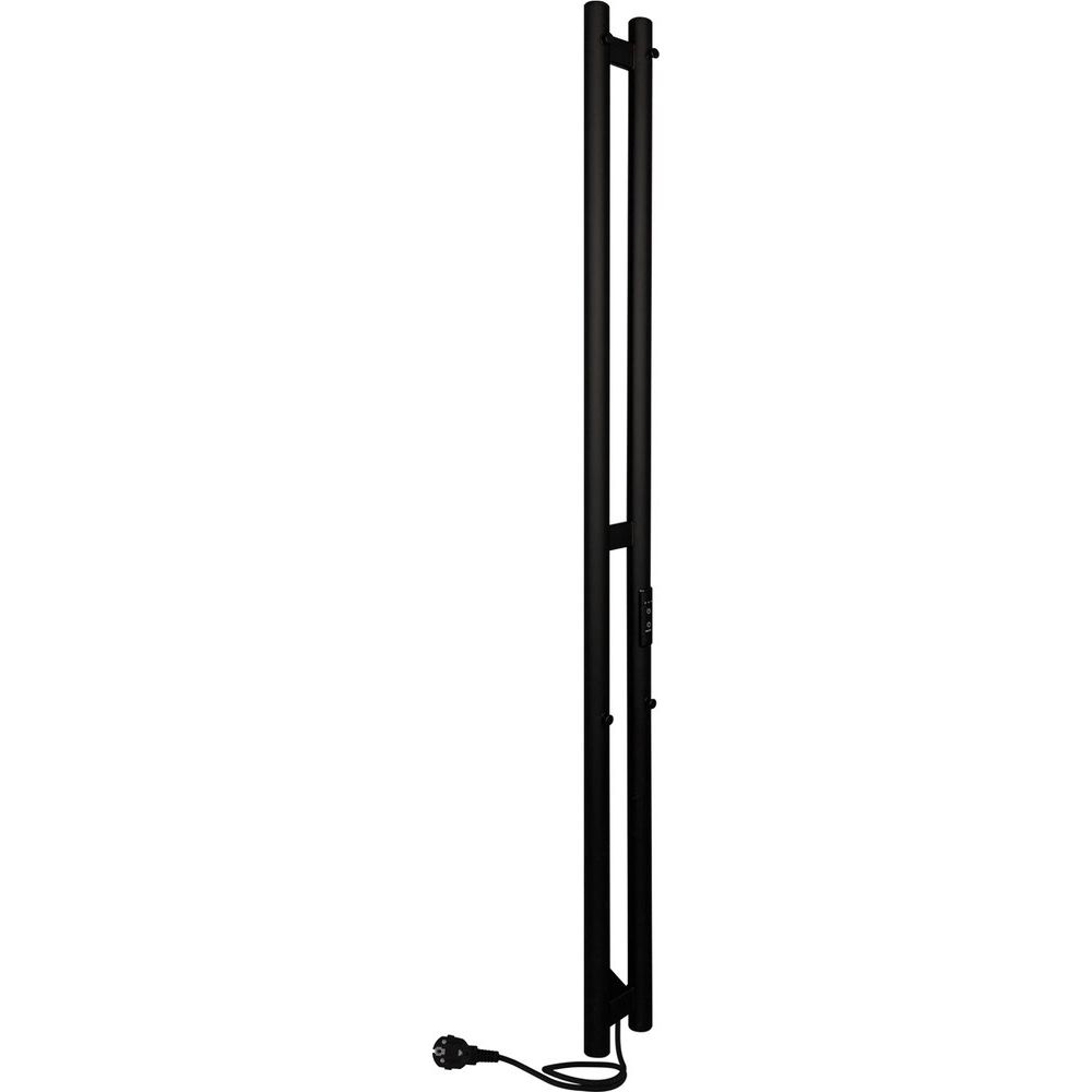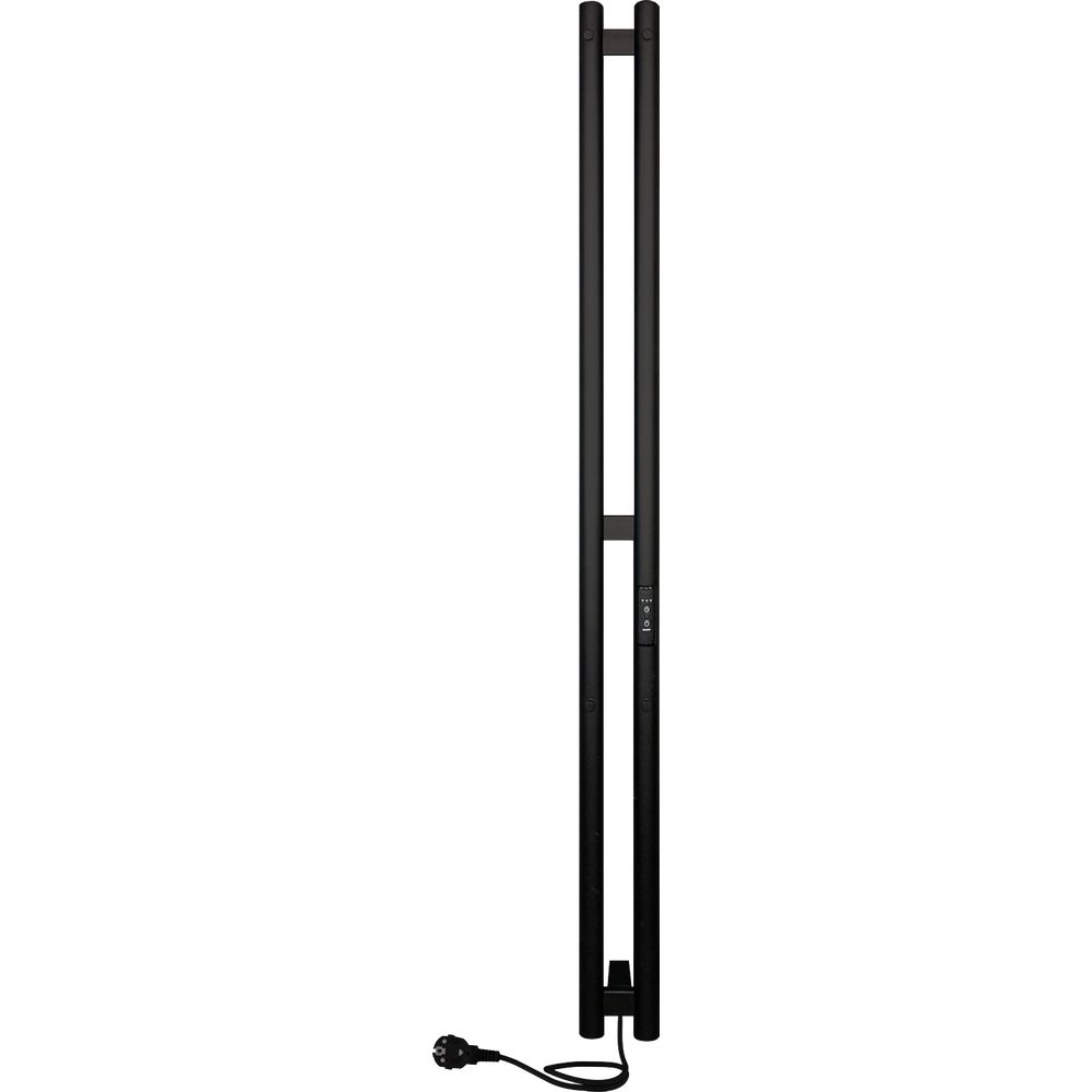 Полотенцесушитель имеет габариты 10,2x120 см, что позволяет ему обогревать площадь до 1,17 м2. Встроенный терморегулятор дает возможность легко настраивать комфортную температуру. Установленный на корпусе выключатель обеспечивает удобство в управлении. Используется труба с электросварным швом для повышения надежности конструкции. Прибор оснащен крючками и креплениями, а также стандартным электрическим кабелем.