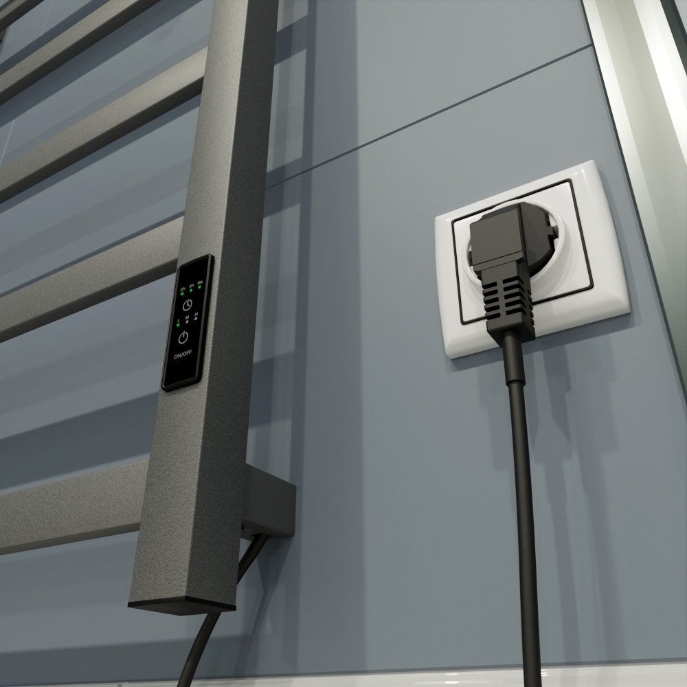 Полотенцесушитель Маргроид имеет размеры 53х81 см и подключается к электрической сети с правой стороны с помощью скрытого в стене подключения. Корпус оснащен выключателем, который позволяет отключать электропитание при необходимости, что добавляет удобства в использовании. Благодаря мощности в 75 Вт и использованию нагревательного кабеля в конструкции, эта модель обеспечивает быстрый и равномерный нагрев.