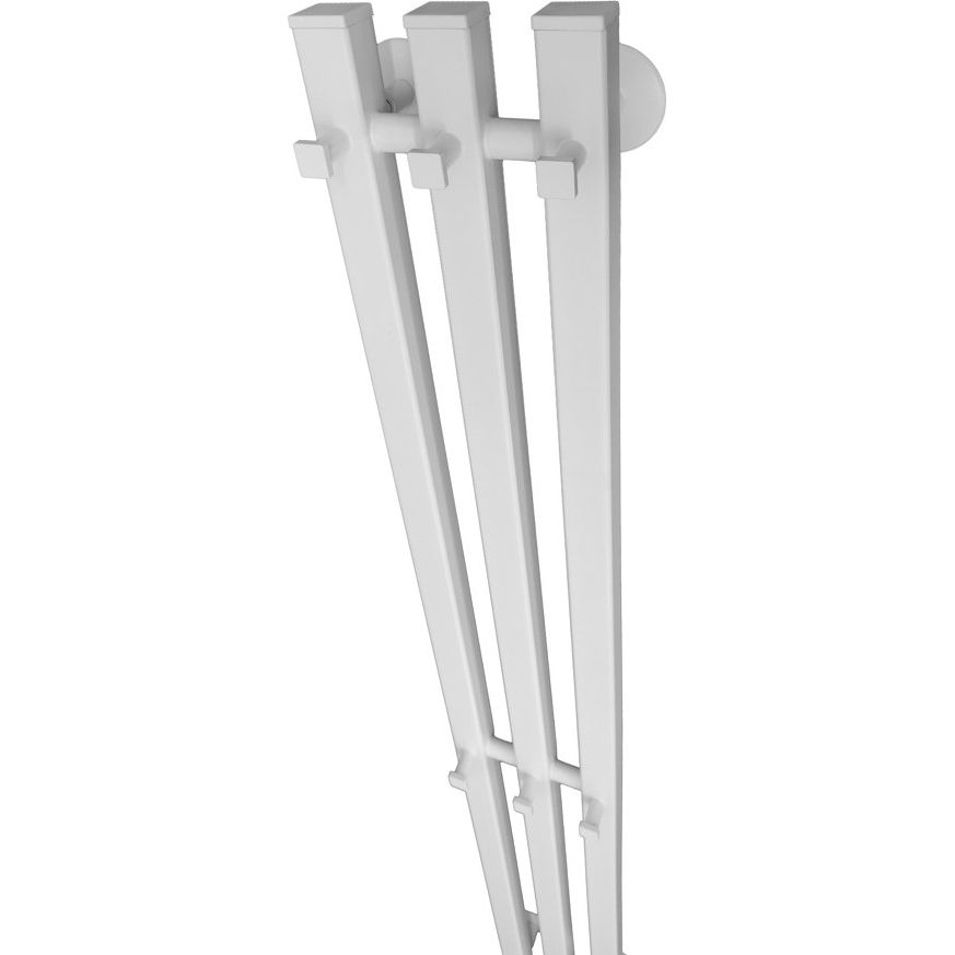 Изготовленный из прочной стали, данный полотенцесушитель является сухого типа, легко монтируется на стену и комплектуется крючками, отражателями, креплениями и электрическим кабелем. Гарантия на изделие составляет 1 год, и оно произведено в России.