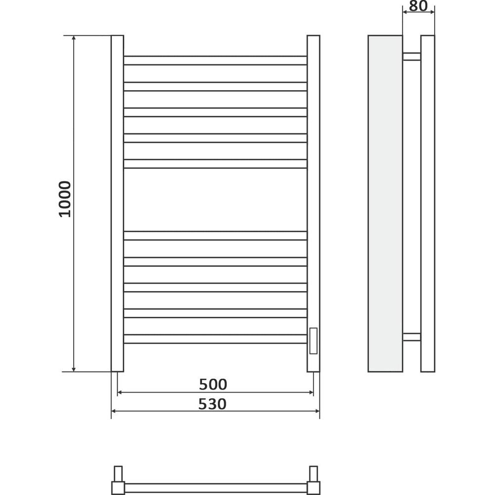 Полотенцесушитель имеет размер 56x100 см, что позволяет устанавливать его даже в небольших ванных комнатах. Мощность устройства составляет 374 Вт, что обеспечивает быстрое нагревание. В комплект входит крепеж и электрический кабель, а также световой индикатор на корпусе, который информирует о работе устройства. Подключение возможно как через кабель с вилкой, так и скрыто в стене, на ваш выбор.