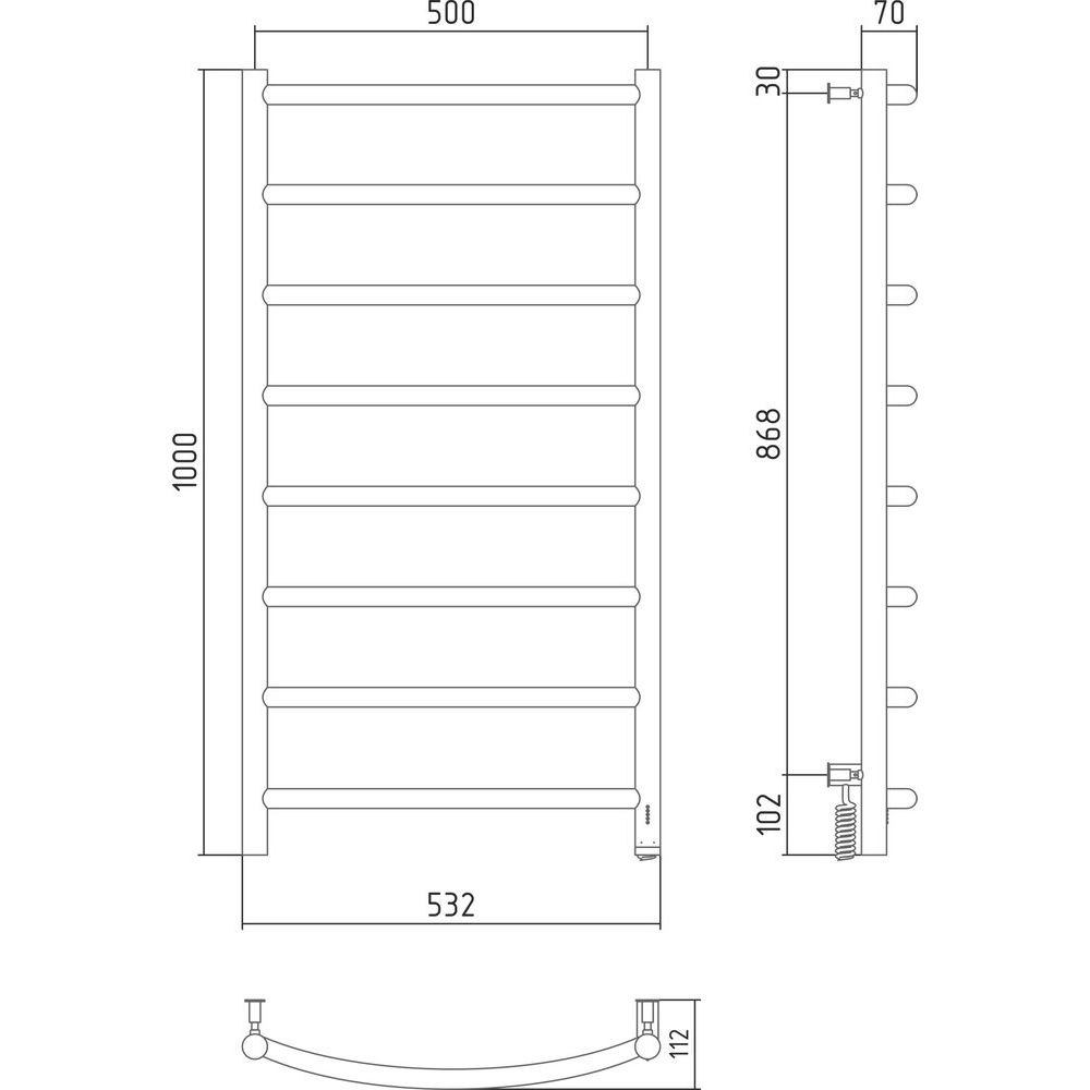 Полотенцесушитель Сунержа Галант 4.0 имеет размеры 53,2x100 см и мощность 147 Вт, что делает его оптимальным для большинства ванных комнат. Прибор подключается к электрической сети через кабель с вилкой, а также поддерживает скрытое подключение в стене, что позволяет сохранить эстетику интерьера. Управление устройством удобно благодаря выключателю на корпусе, встроенному терморегулятору и таймеру отключения. Полотенцесушитель выполнен из нержавеющей стали, что обеспечивает его долговечность и стойкость к коррозии. Нагревательный компонент, ТЭН, расположен внизу устройства для равномерного распределения тепла, а установка сухого типа снижает вероятность протечек.