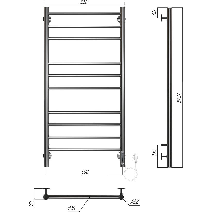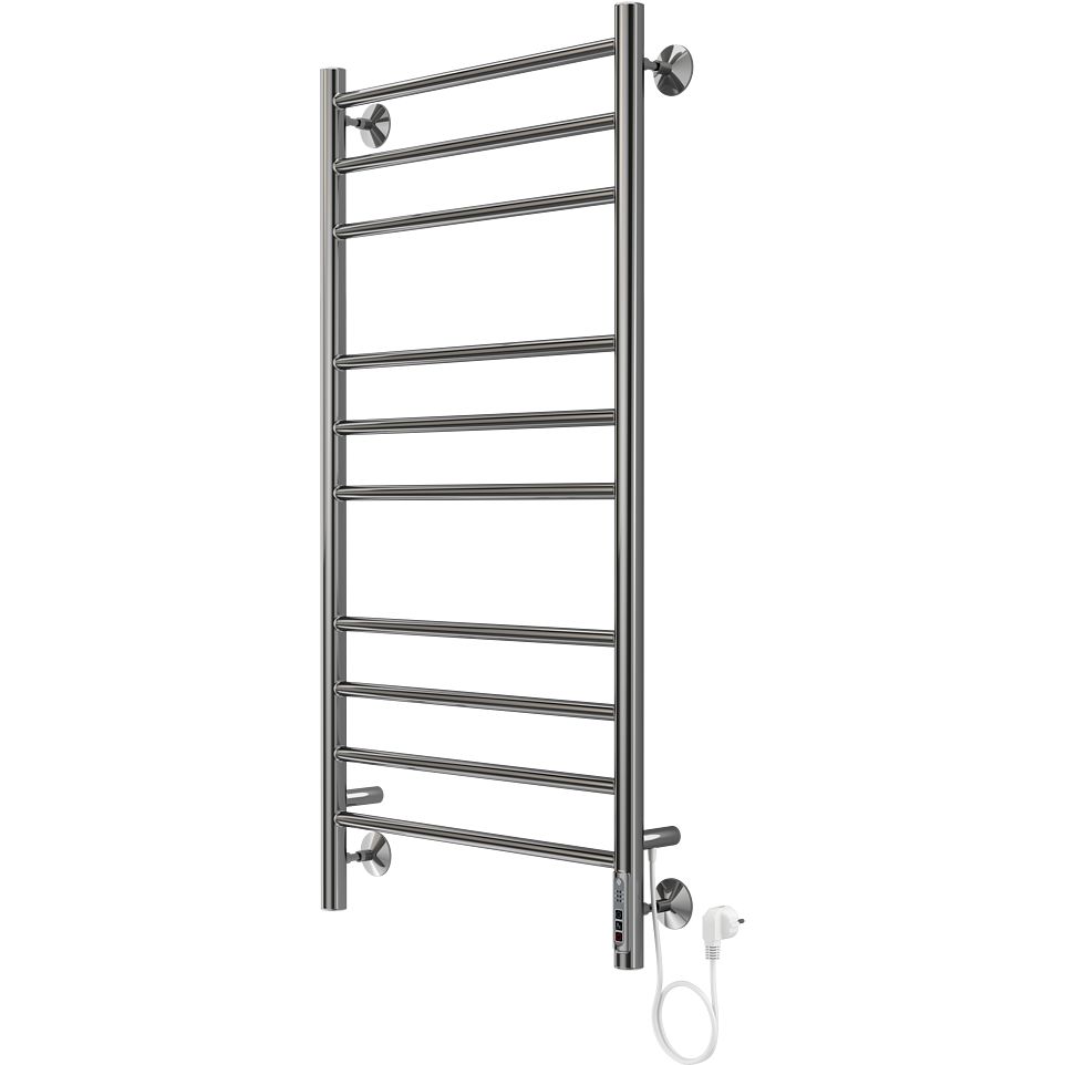 Полотенцесушитель Terminus Аврора П10 имеет размеры 53,2x105 см, что позволяет ему не только выполнять свою основную функцию, но и эффективно обогревать площадь до 2,5 м2. Его сухая конструкция с нагревательным кабелем обеспечивает безопасность и долговечность использования. Управление осуществляется через удобный выключатель на корпусе, а встроенный таймер автоматизирует отключение. Устройство изготовлено из высококачественной нержавеющей стали с использованием трубы с электросварным швом, и его установка возможна как справа, так и слева. Полотенцесушитель подвесной и включает в себя все необходимые аксессуары для монтажа: отражатели, крепления и электрический кабель.