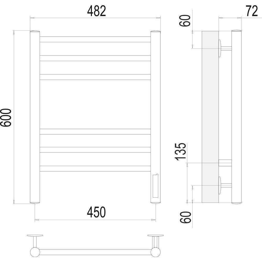 Полотенцесушитель имеет размеры 48,2x60 см, что делает его идеальным для небольших помещений. Мощность устройства составляет 90 Вт, и оно способно эффективно обогревать площадь до 1.5 м². Подключение можно выполнить через кабель с вилкой либо скрыто в стене, что позволяет выбрать наиболее подходящий способ для вашего интерьера. Устройство оснащено нагревательным ТЭНом в нижней части и имеет подвесное крепление. Полотенцесушитель сухого типа, выполнен из стали, что гарантирует его долговечность. Гарантия производителя составляет 2 года.