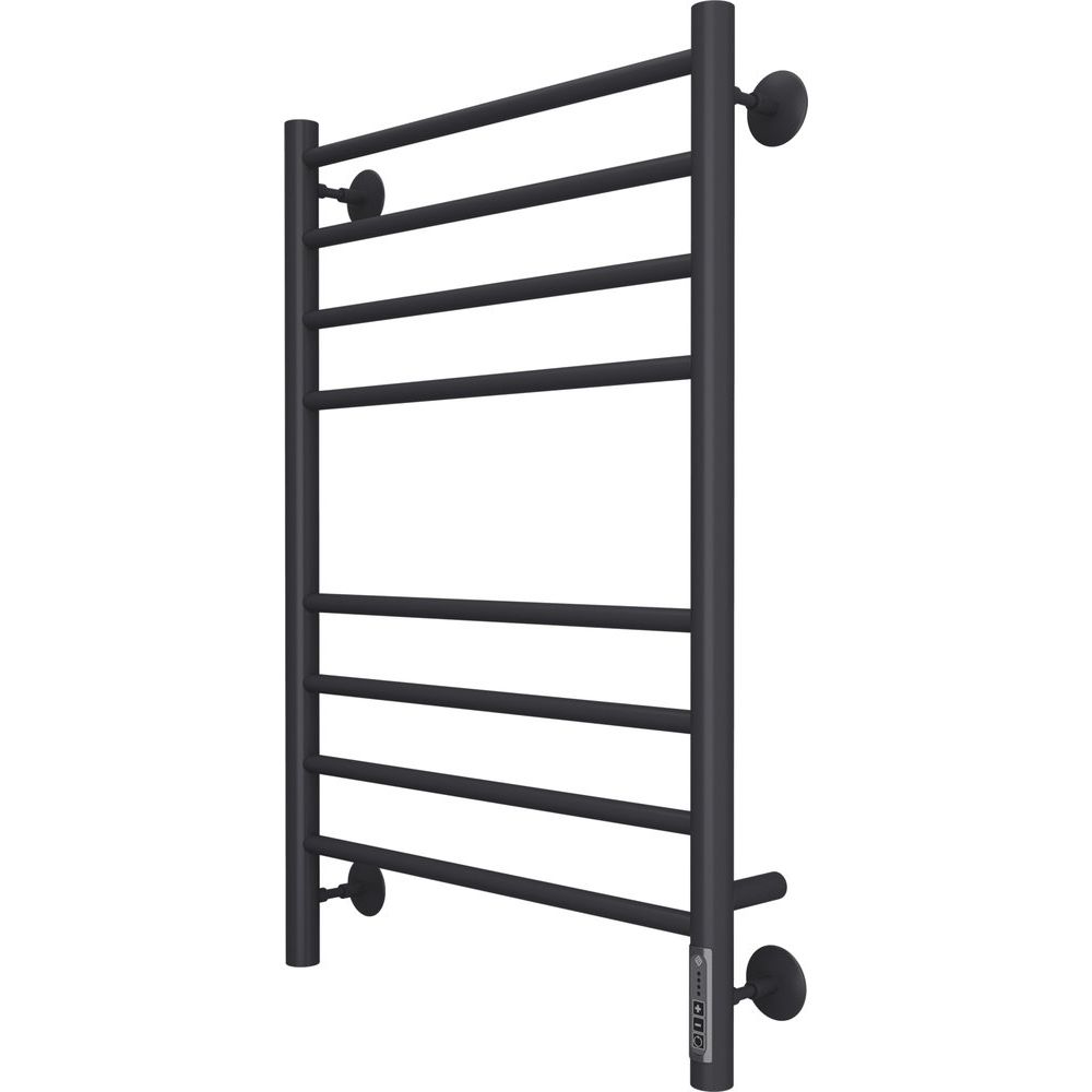 Представляем Вам инновационное решение для Вашей ванной комнаты — электрический полотенцесушитель Terminus Аврора П8 500x800 в стильном матовом черном цвете. Этот прибор сочетает в себе не только стильный дизайн и современные технологии, но и максимальную безопасность, долговечность в использовании и энергоэффективность. Управление температурой осуществляется с помощью терморегулятора с подсветкой, что делает эксплуатацию комфортной и интуитивно понятной.