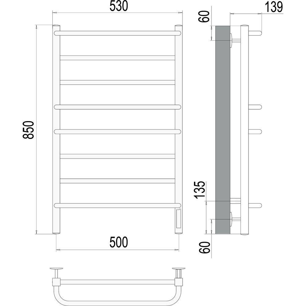 Полотенцесушитель имеет габариты 53x85 см и мощность 125 Вт, что позволяет эффективно обогревать площадь до 2 м². Подключение осуществляется справа через электрический кабель с вилкой, либо скрытно в стене. Для удобства использования предусмотрен выключатель на корпусе и световой индикатор работы, а благодаря встроенному терморегулятору, вы всегда можете выбрать оптимальную температуру нагрева. Устройство оснащено нагревательным кабелем сухого типа и предназначено для подвешивания на стену. Труба выполнена с контактной сваркой, что обеспечивает надежность и долговечность.