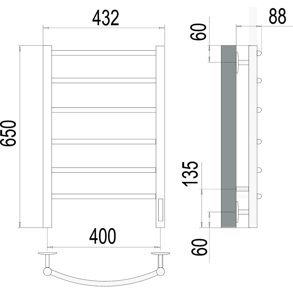 Полотенцесушитель Terminus Классик П6 имеет размеры 43,2x65 см и подходит для обогрева площади в 1,5 м². Мощность устройства составляет 85 Вт, что обеспечивает достаточный уровень обогрева. Конструкция включает в себя встроенный терморегулятор и световой индикатор на корпусе, а также предусмотрено правостороннее подключение к электрической сети. Для удобства использования имеется выключатель на корпусе, а также предусмотрены скрытые варианты подключения. Изделие изготовлено из нержавеющей стали, что гарантирует долговечность и устойчивость к коррозии.