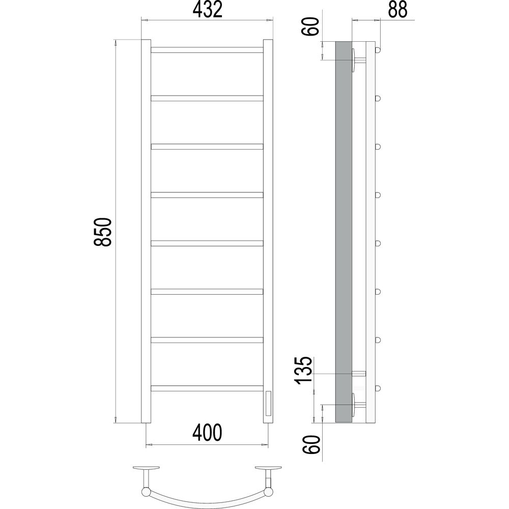 Полотенцесушитель электрический Terminus Классик П8, 400x850 — это идеальное сочетание элегантного дизайна и передовых технологий. Созданный для вашего комфорта, он не только помогает поддерживать уютную атмосферу в ванной комнате, но и значительно экономит ваше время за счёт быстрой сушки полотенец и других текстильных изделий.