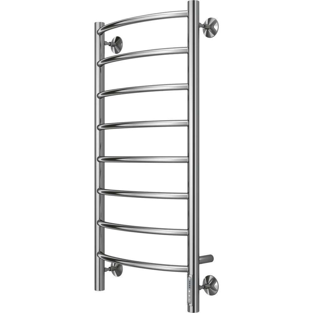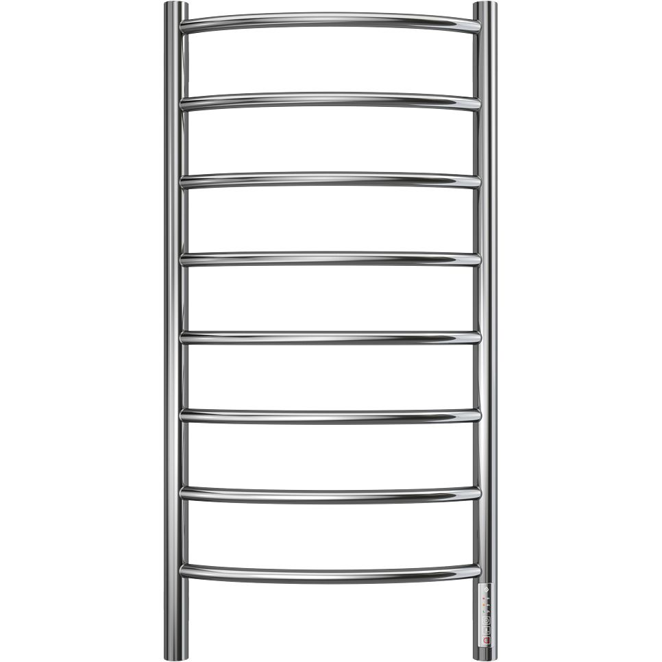 Полотенцесушитель имеет размеры 43,2x85 см, подключение выполняется через кабель справа, что позволяет гибко интегрировать его в интерьер. Мощность устройства составляет 110 Вт, что охватывает площадь обогрева до 1.5 м². Изделие выполнено из нержавеющей стали методом контактной сварки, обеспечивая высокую коррозионную стойкость и долговечность. Комплектуются креплениями и электрическим кабелем для простой установки.